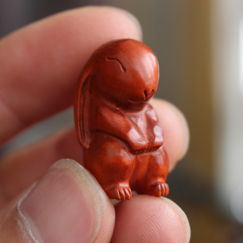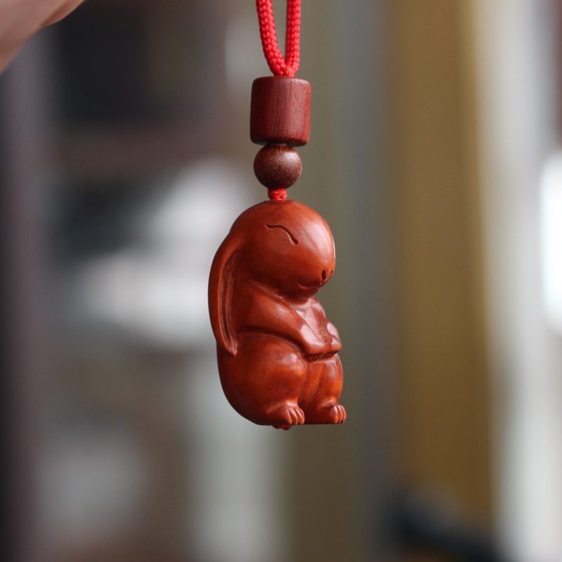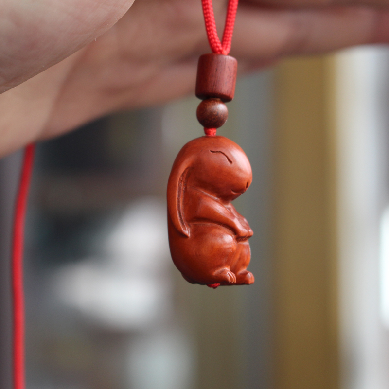 高端精雕桃木十二生肖兔萌兔項鏈本命年兔子屬相鑰匙扣掛件吊墜1入