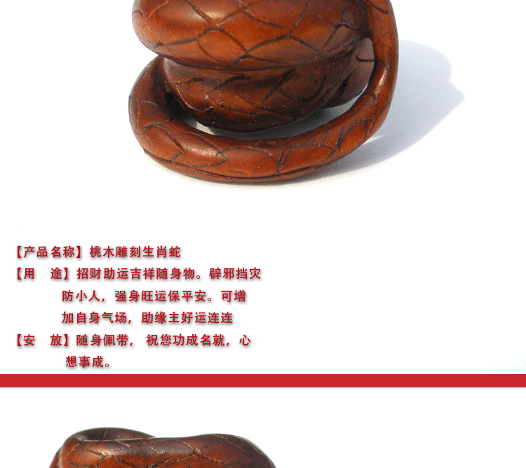 蛇項鏈蛇吊墜桃木生肖 蛇擺件飾品 手把件掛件 十二生肖飾品 擺1入