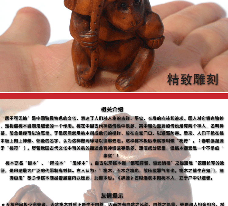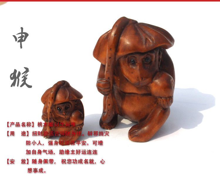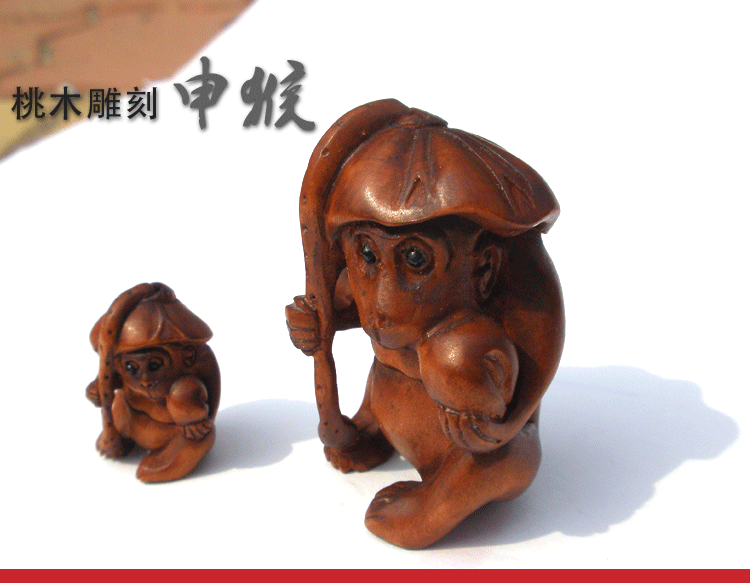 鑰匙扣 猴吊墜桃木雕猴子生肖飾品掛件 隨身手把件古玩木雕生肖1入