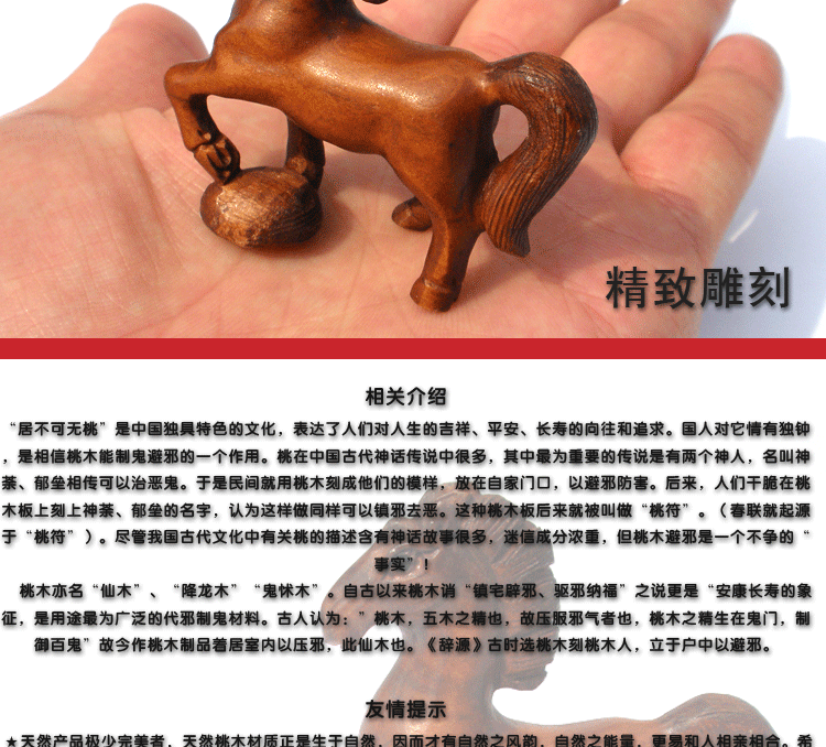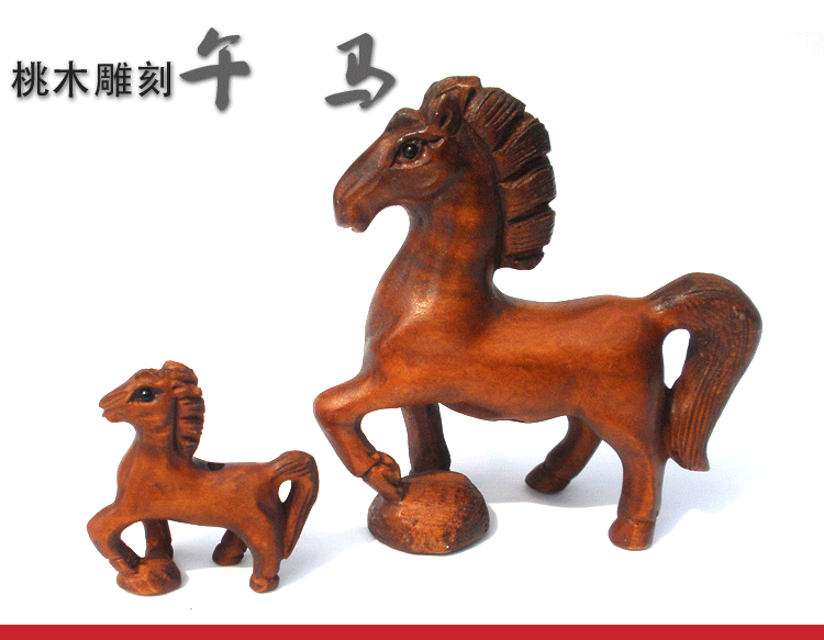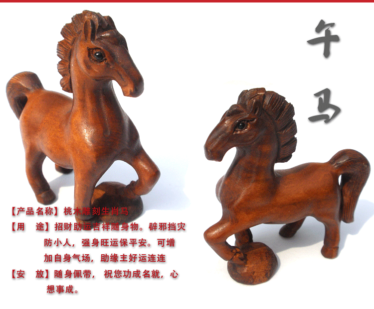 桃木生肖馬雕刻馬擺件辦公桌轉運十二生肖擺件掛件把件木雕藝術1入