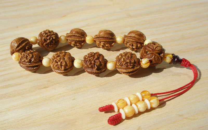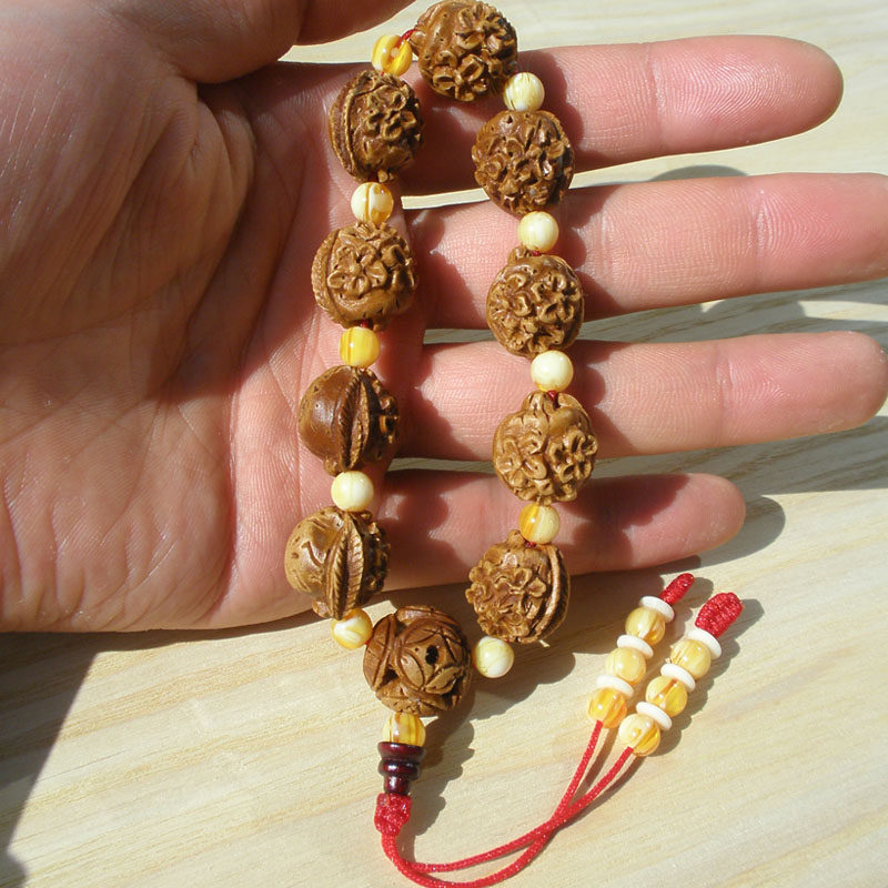 文玩精品 桃核桃花手串佛珠野生桃核雕刻手鏈雕刻 手串男女手1入