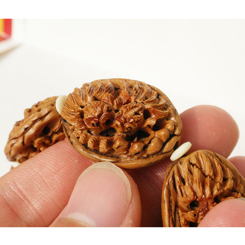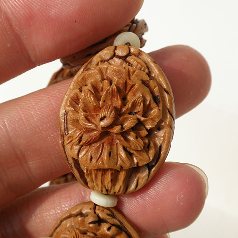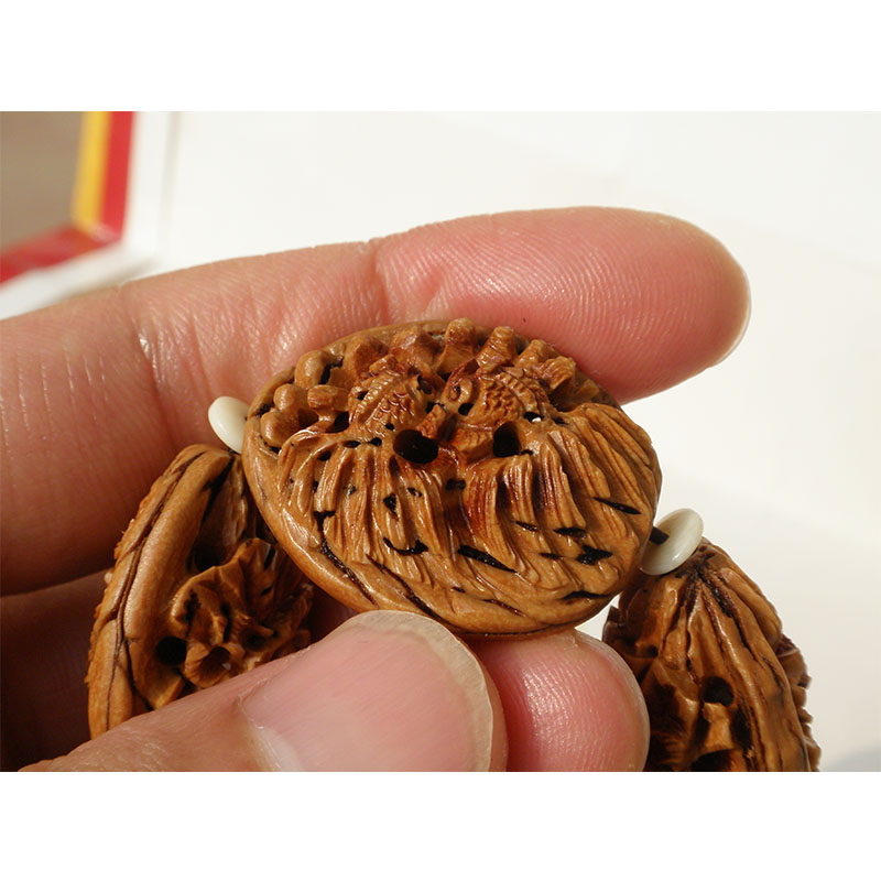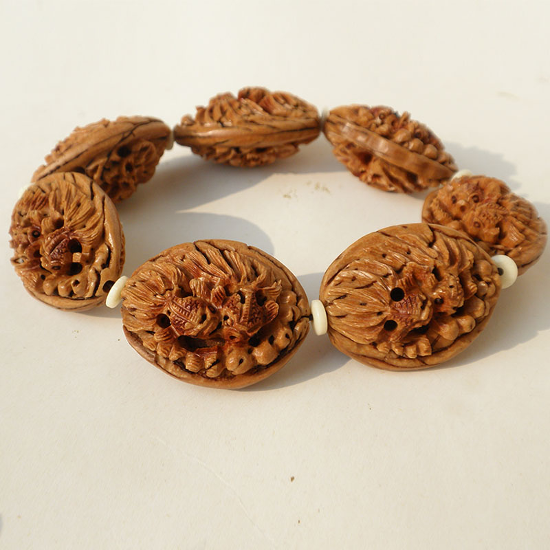 野生超大桃核雕刻文玩精品金玉滿堂金魚 招財桃核手串手鏈1入