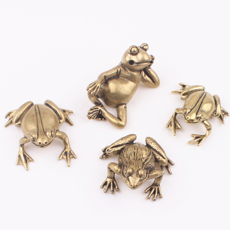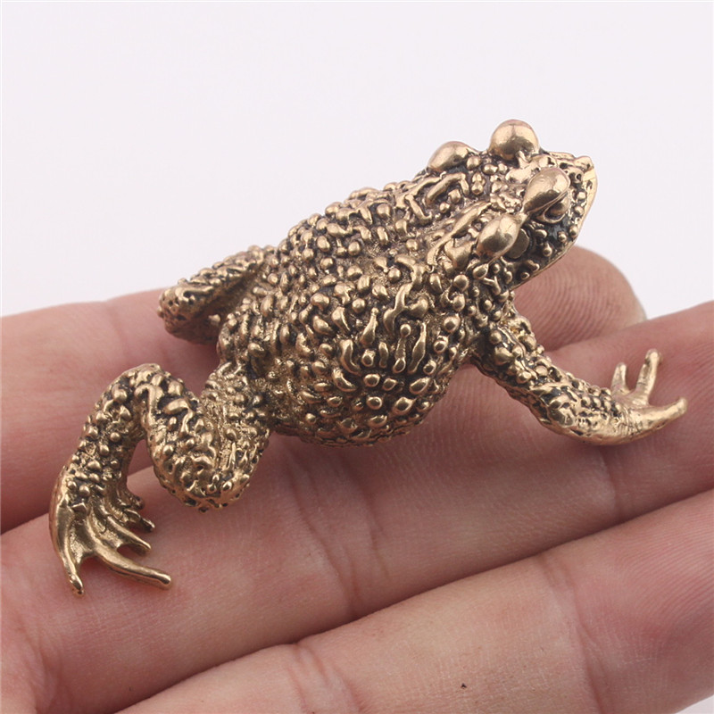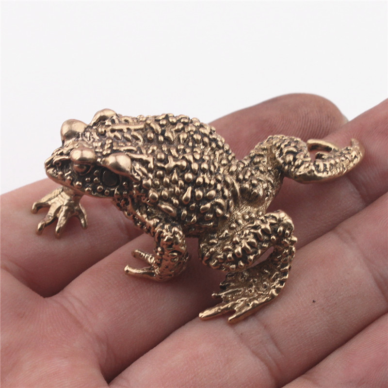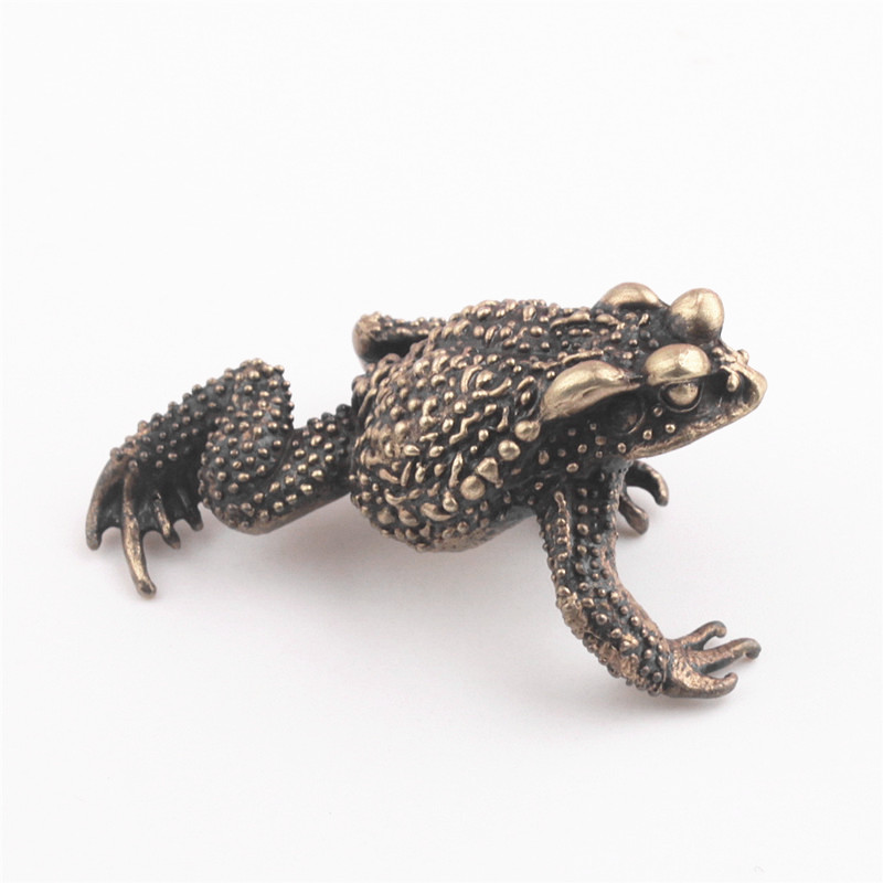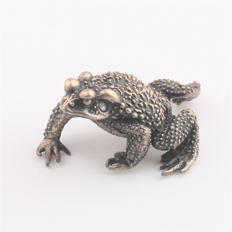 純銅鑰匙扣實心蟾蜍青蛙創意辦公鎮紙茶寵招財汽車小擺件個性飾品1入