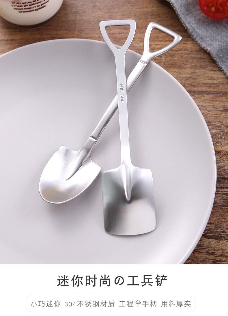 鐵鍬勺子304不銹鋼創意吃西瓜神器復古工兵鏟咖啡甜品雪糕鐵?勺1入