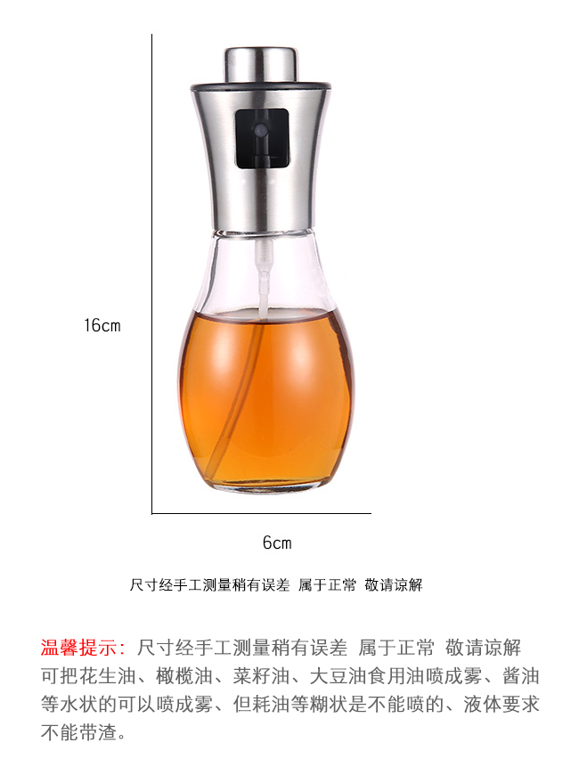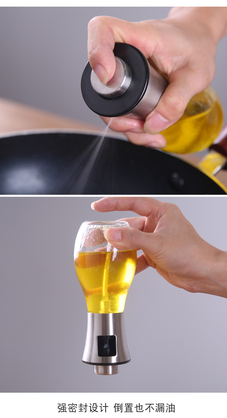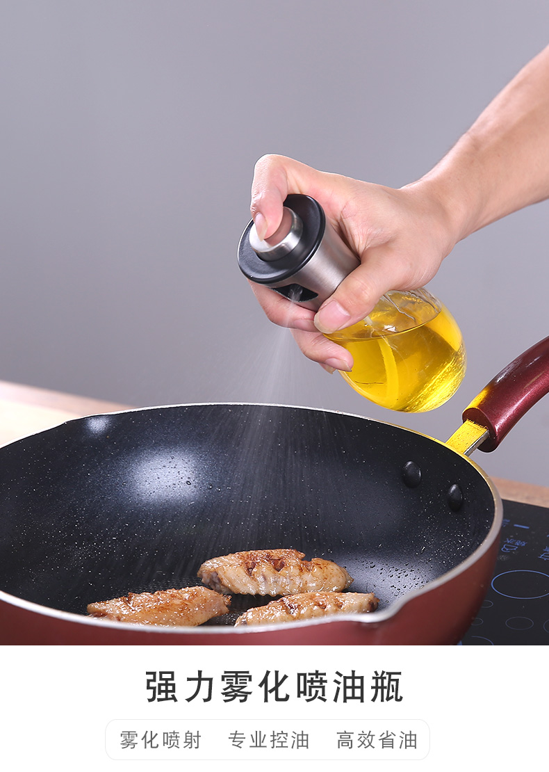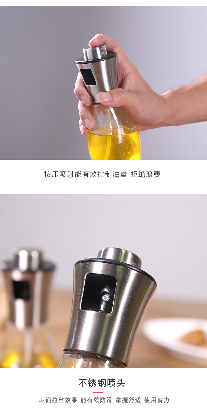 霧化噴油瓶304不銹鋼食用油密封噴油壺燒烤橄欖油控油健身噴油瓶1入