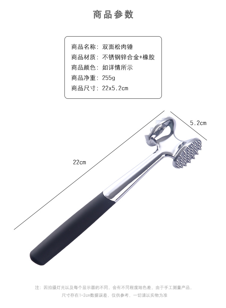 雙面松肉錘牛排錘子嫩肉針不銹鋼鋅合金砸拍打豬扒德國敲肉錘工具1入
