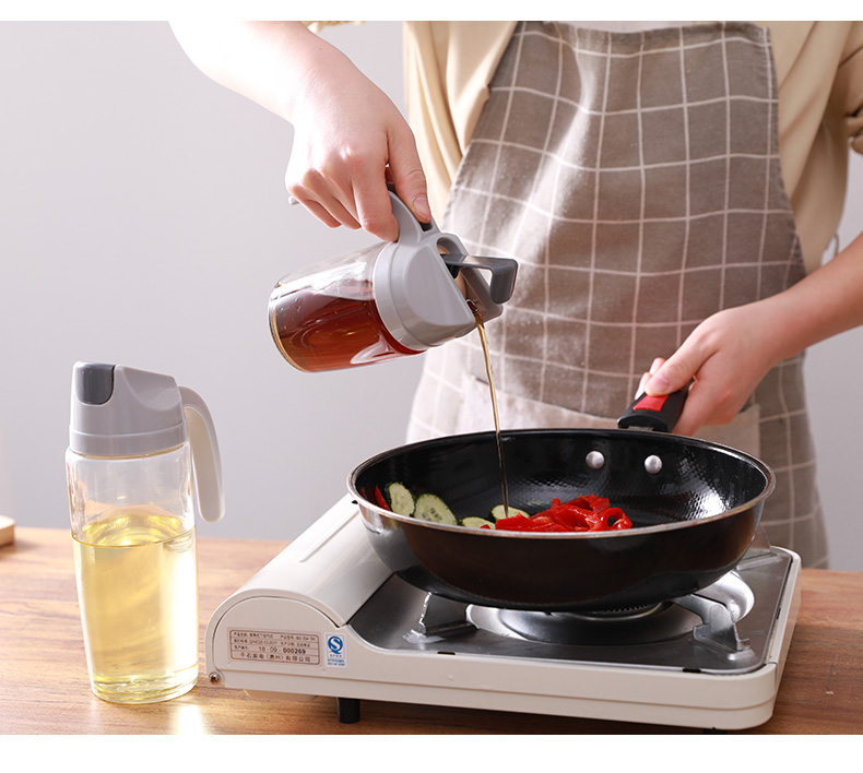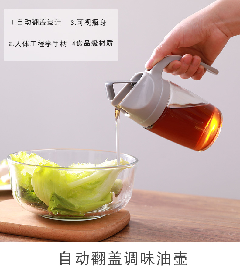 防漏裝油壺家用透明玻璃香油瓶自動翻蓋醋壺廚房不掛油大小調料壺1入