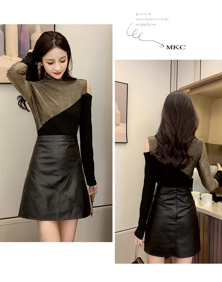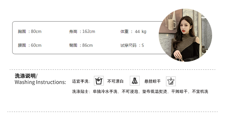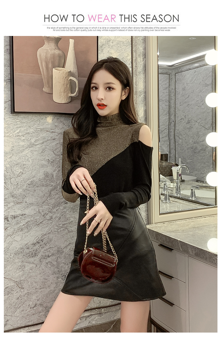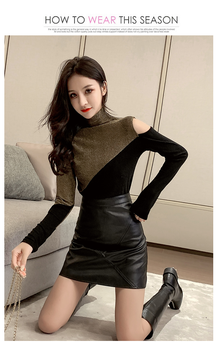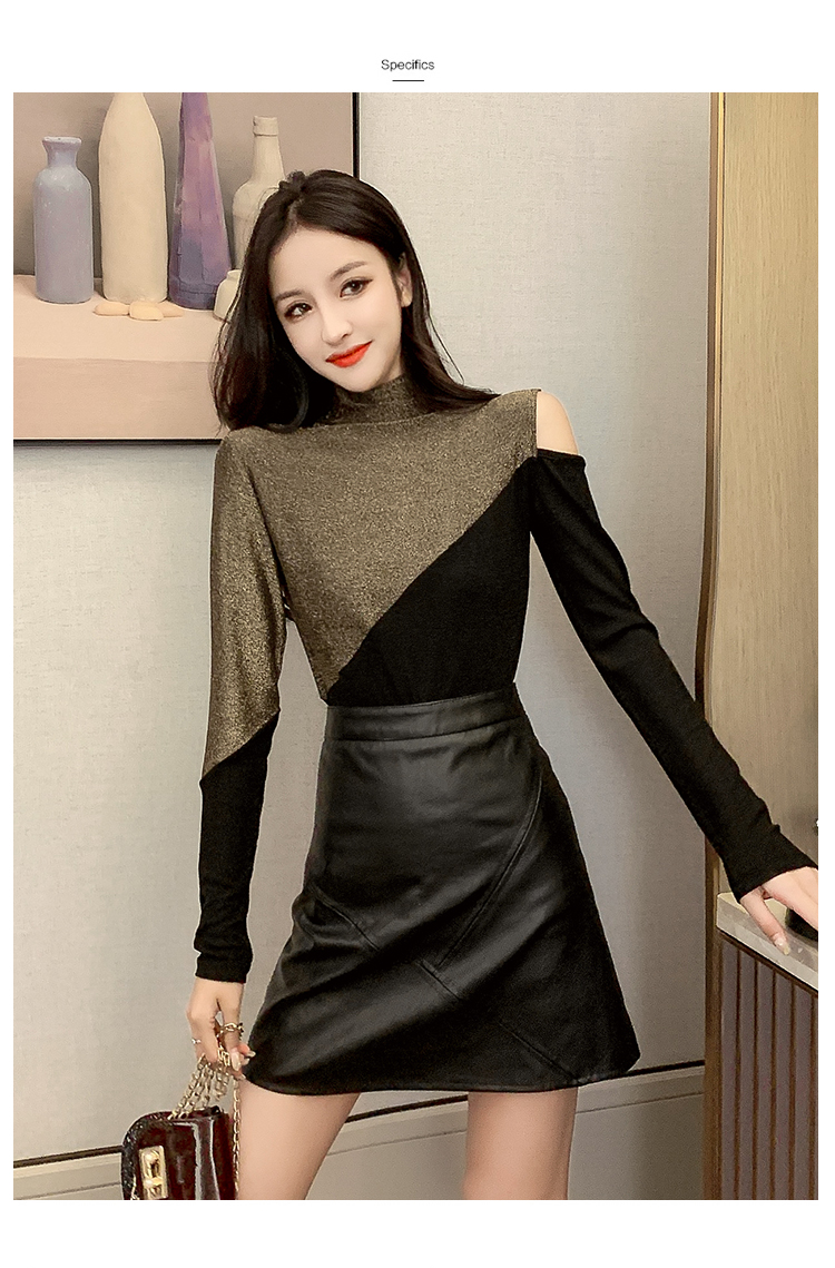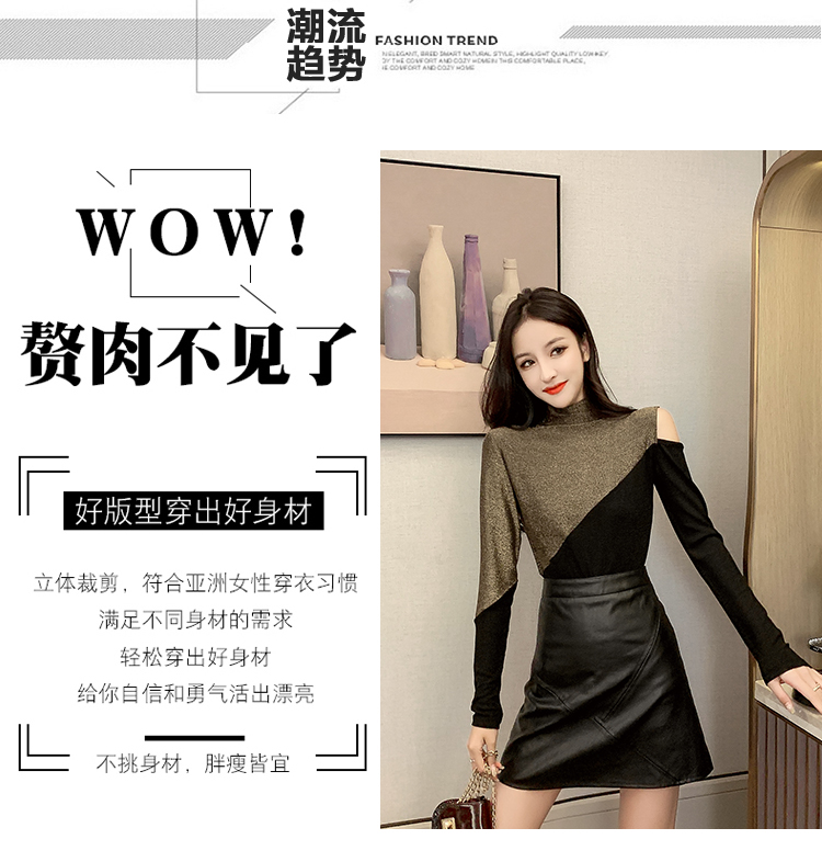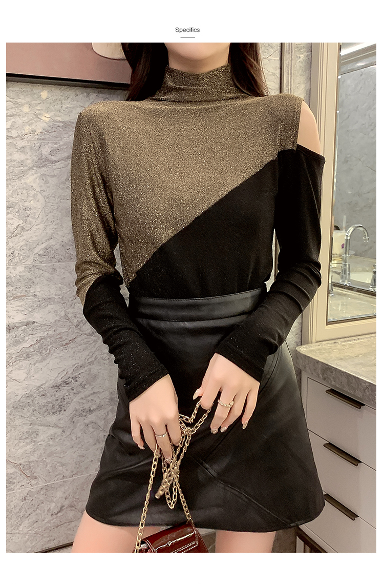 高領打底衫女長袖2019秋冬新款性感露肩T恤緊身顯瘦時尚洋氣上衣1入