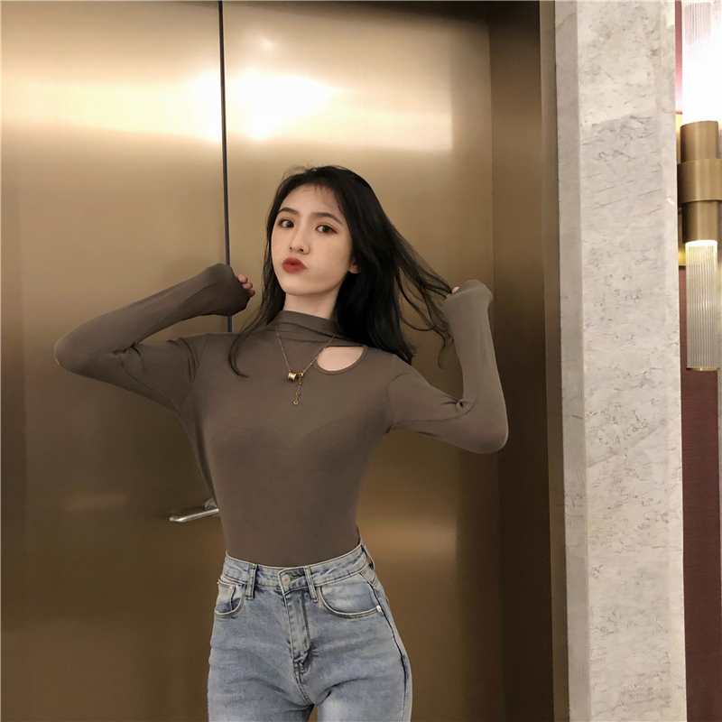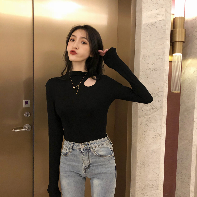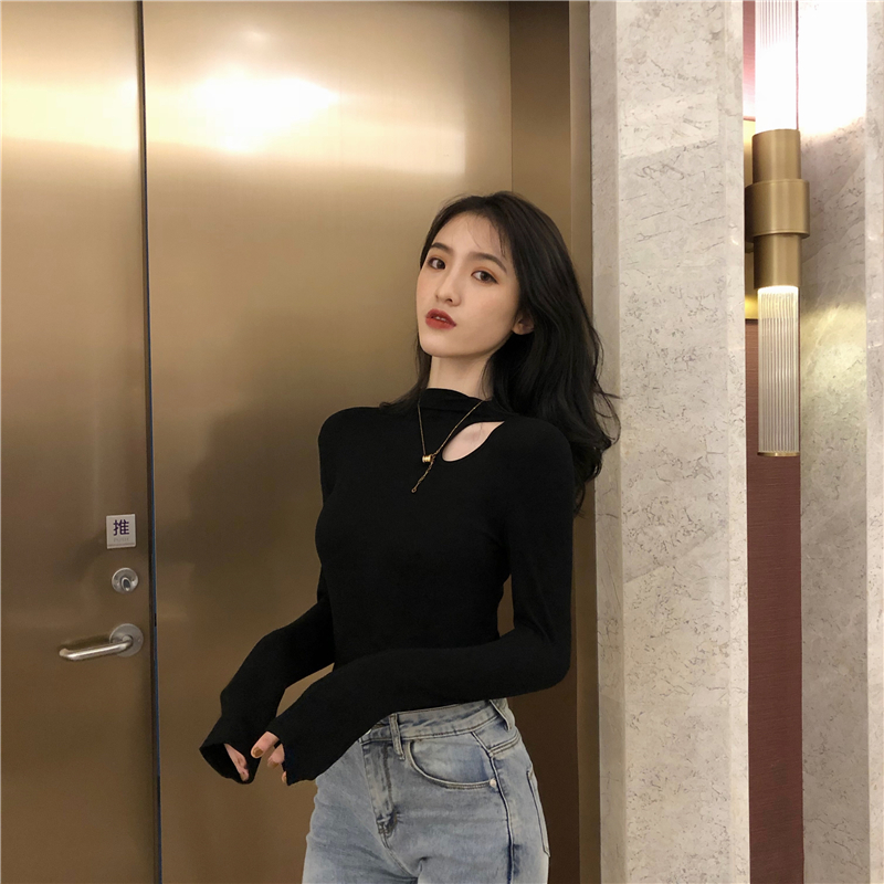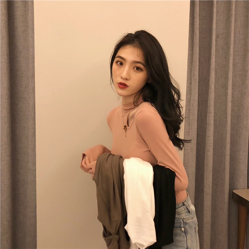 黑色半高領打底衫女2019洋氣秋冬修身內搭長袖t恤性感緊身上衣潮1入