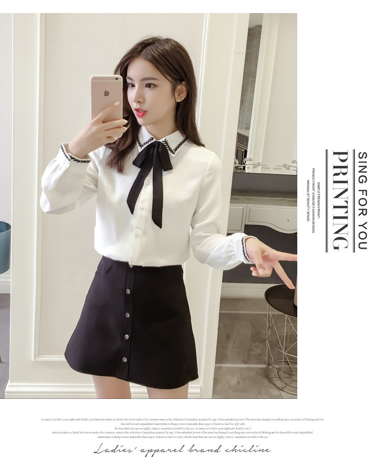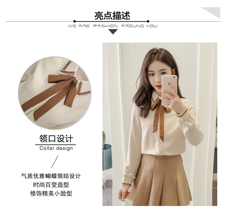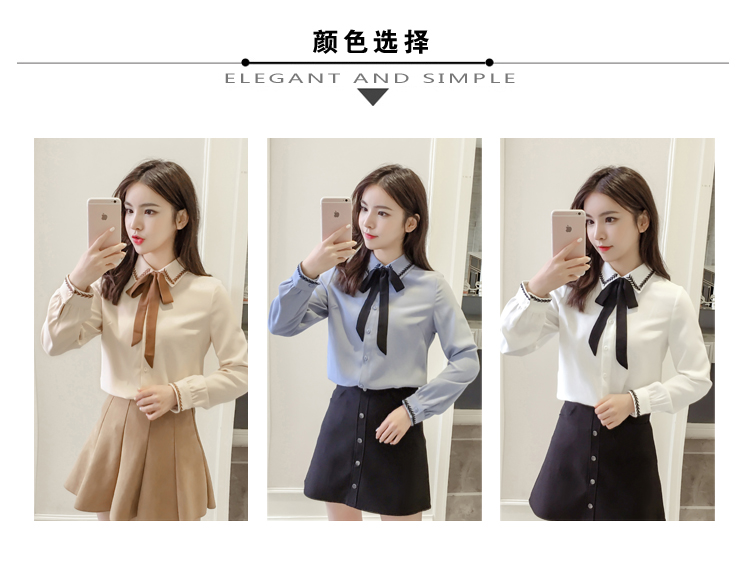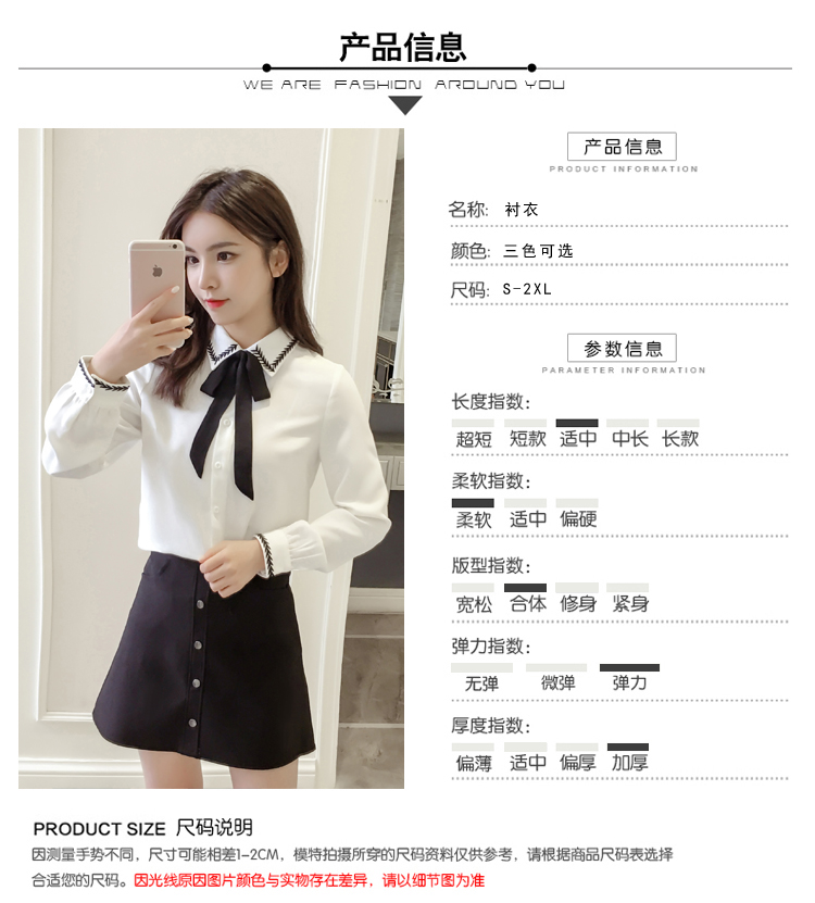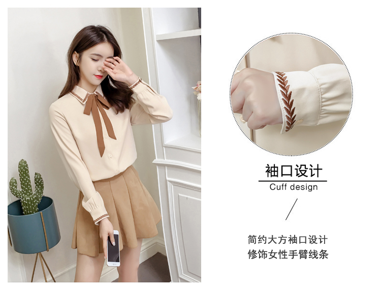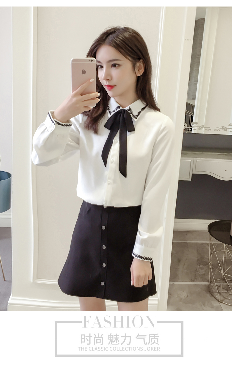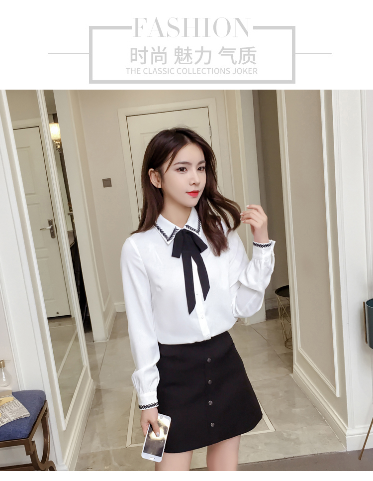 雪紡襯衫女長袖2019秋裝新款韓版百搭加絨打底白色襯衣職業裝上衣1入