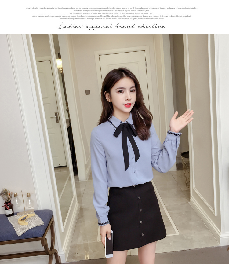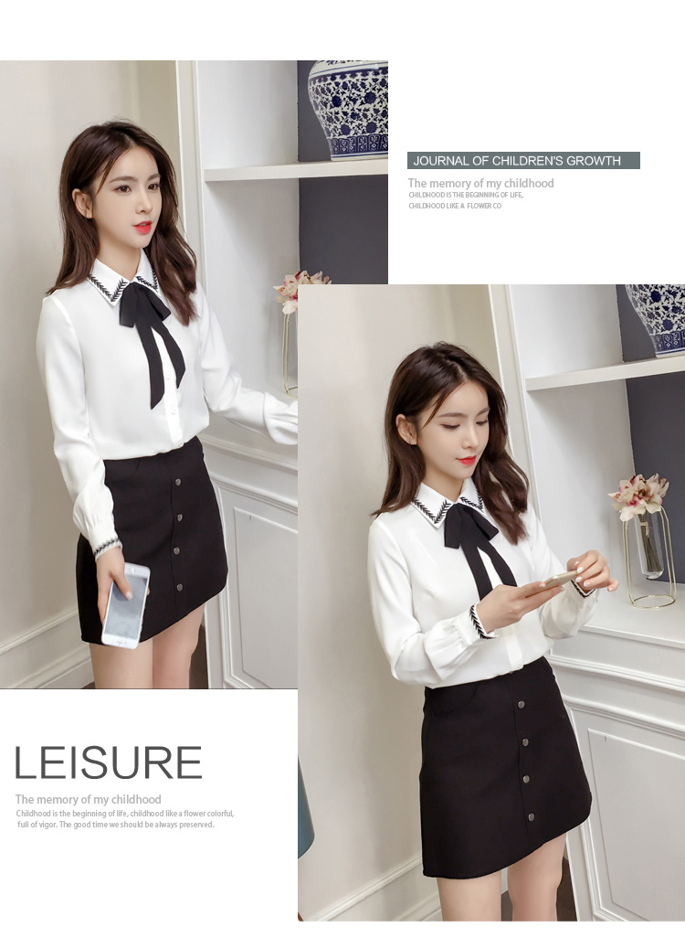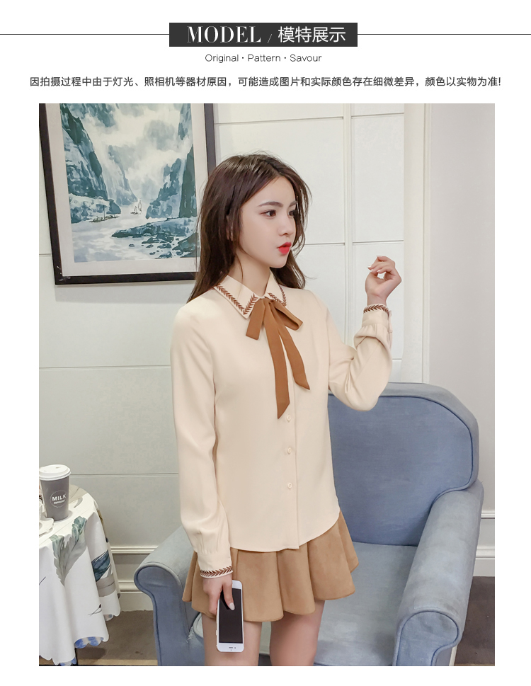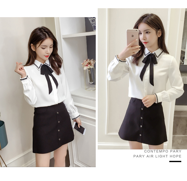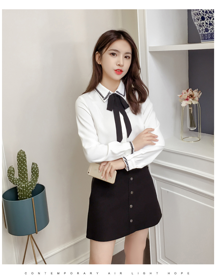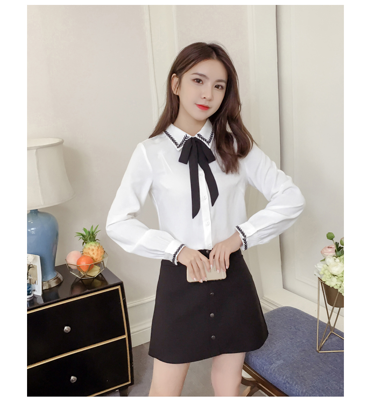 雪紡襯衫女長袖2019秋裝新款韓版百搭加絨打底白色襯衣職業裝上衣1入