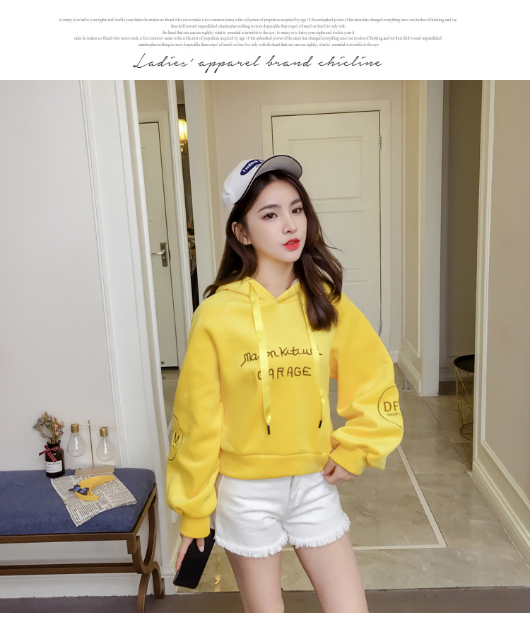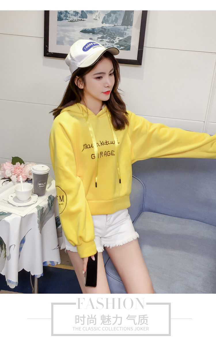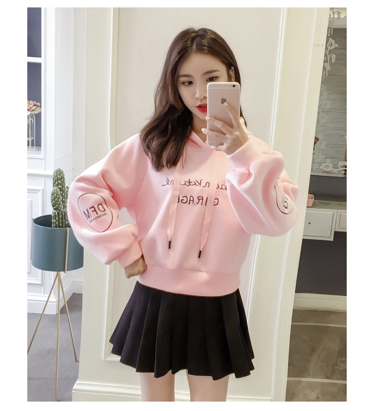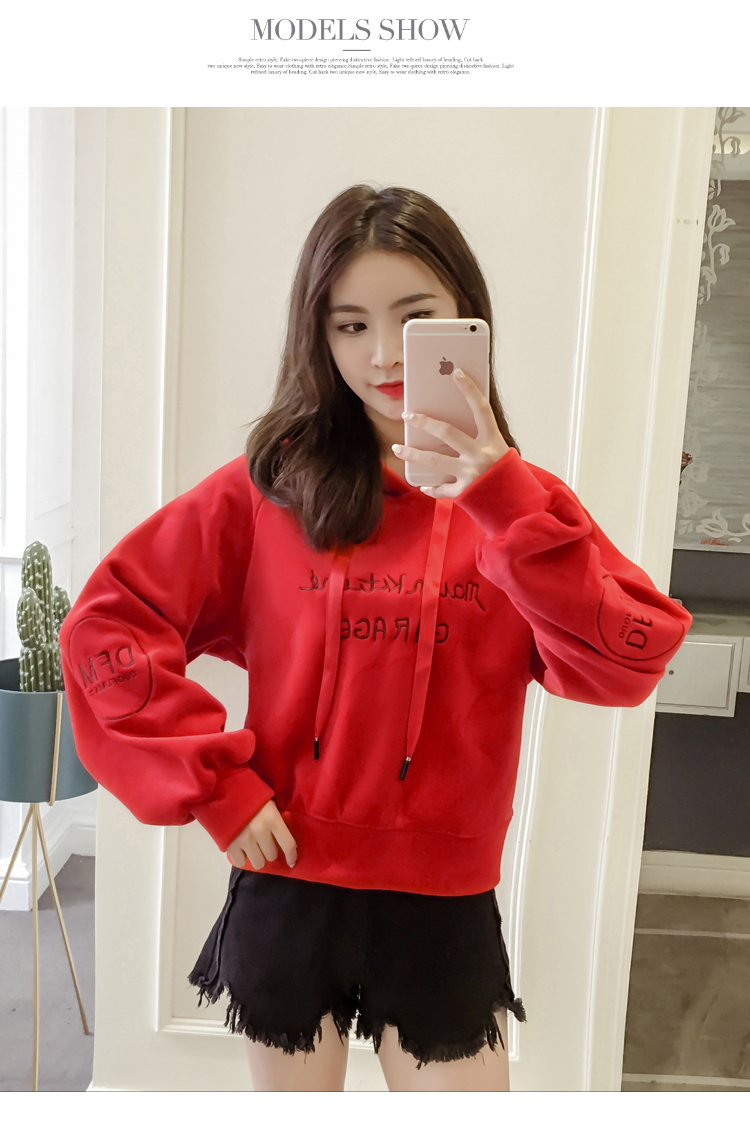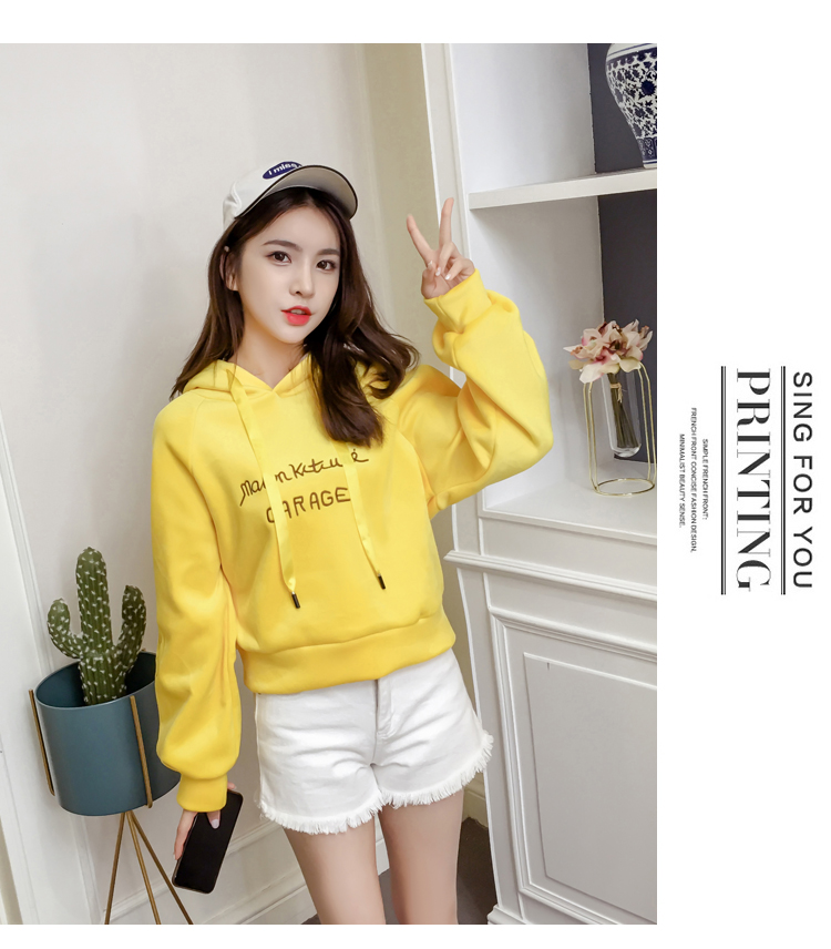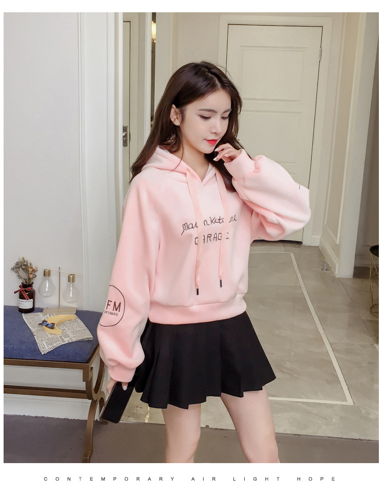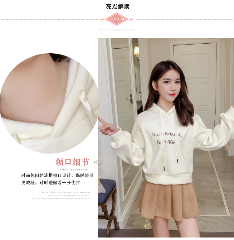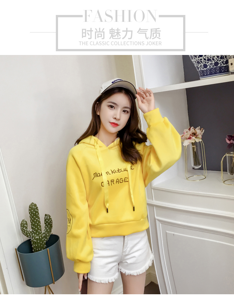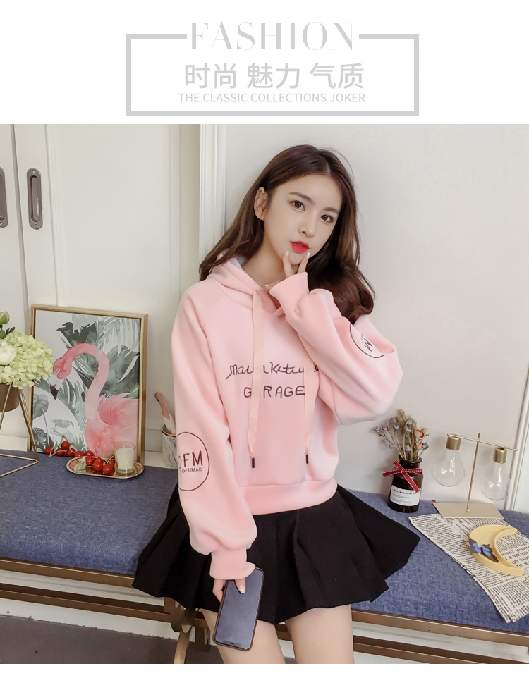 金絲絨連帽衛衣女加絨加厚秋冬新款韓版寬松學生刺繡短款套頭上衣1入