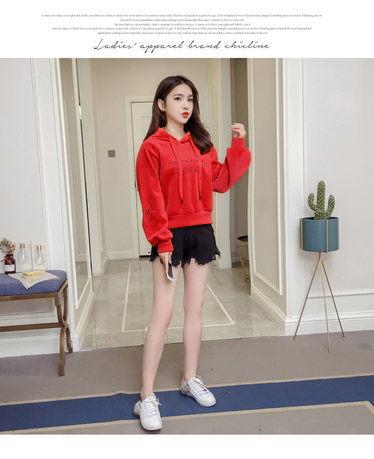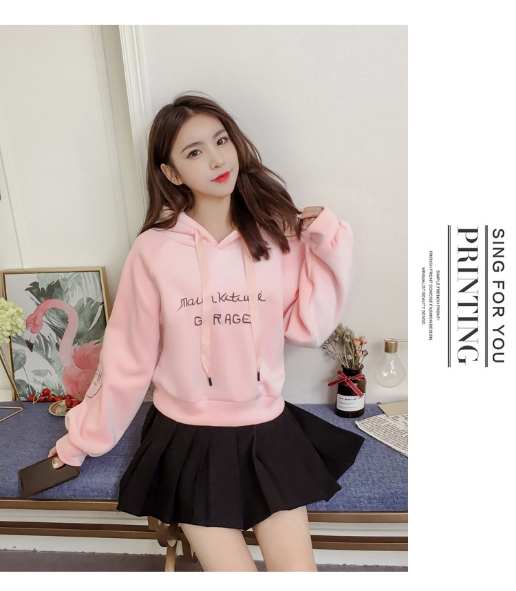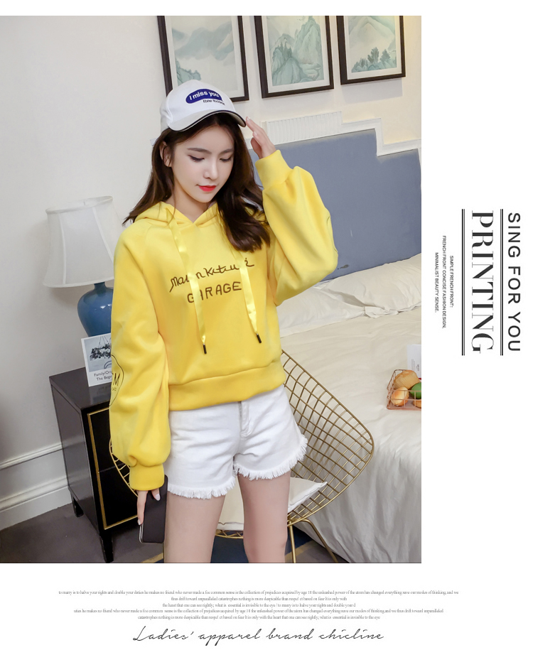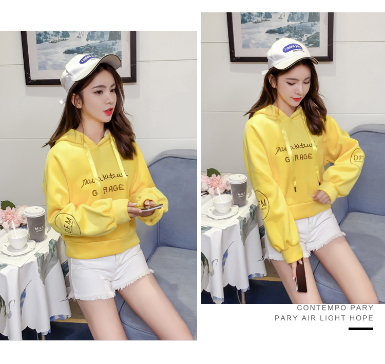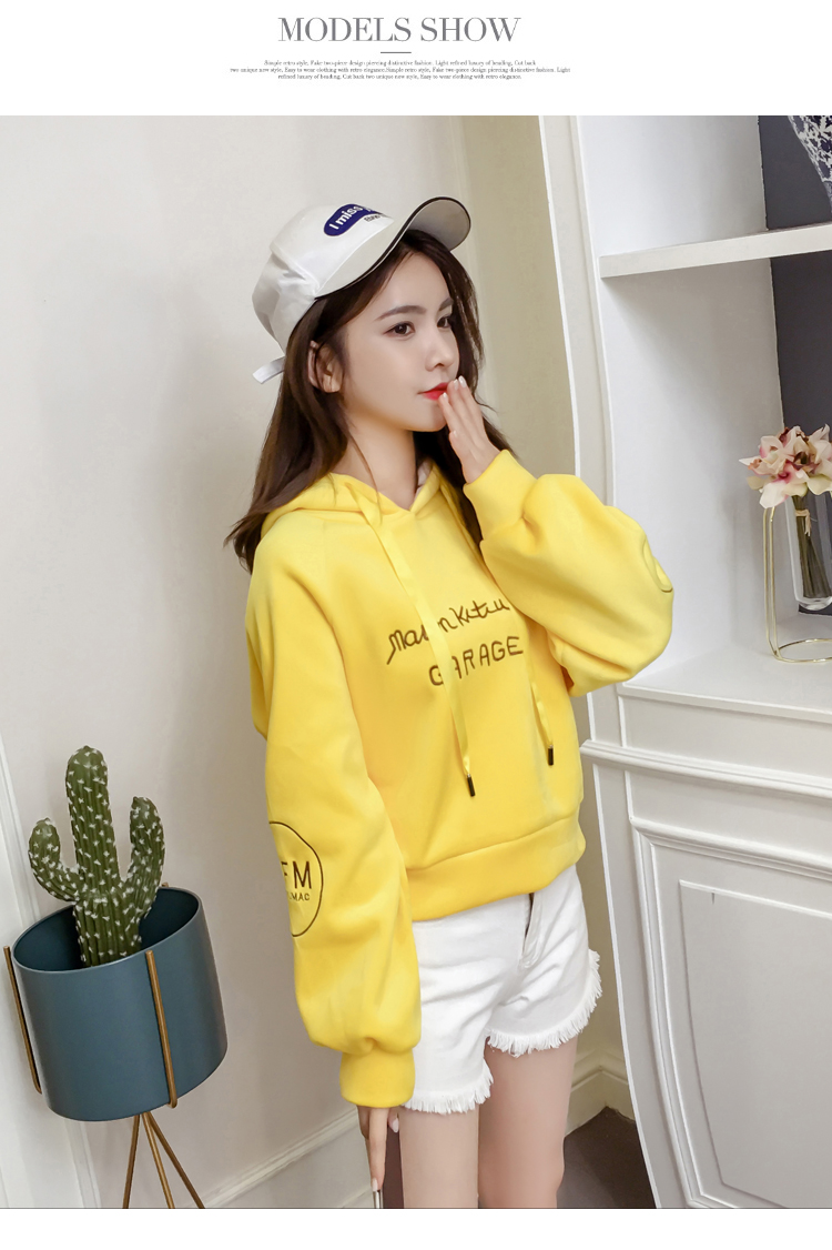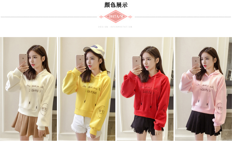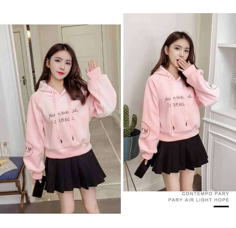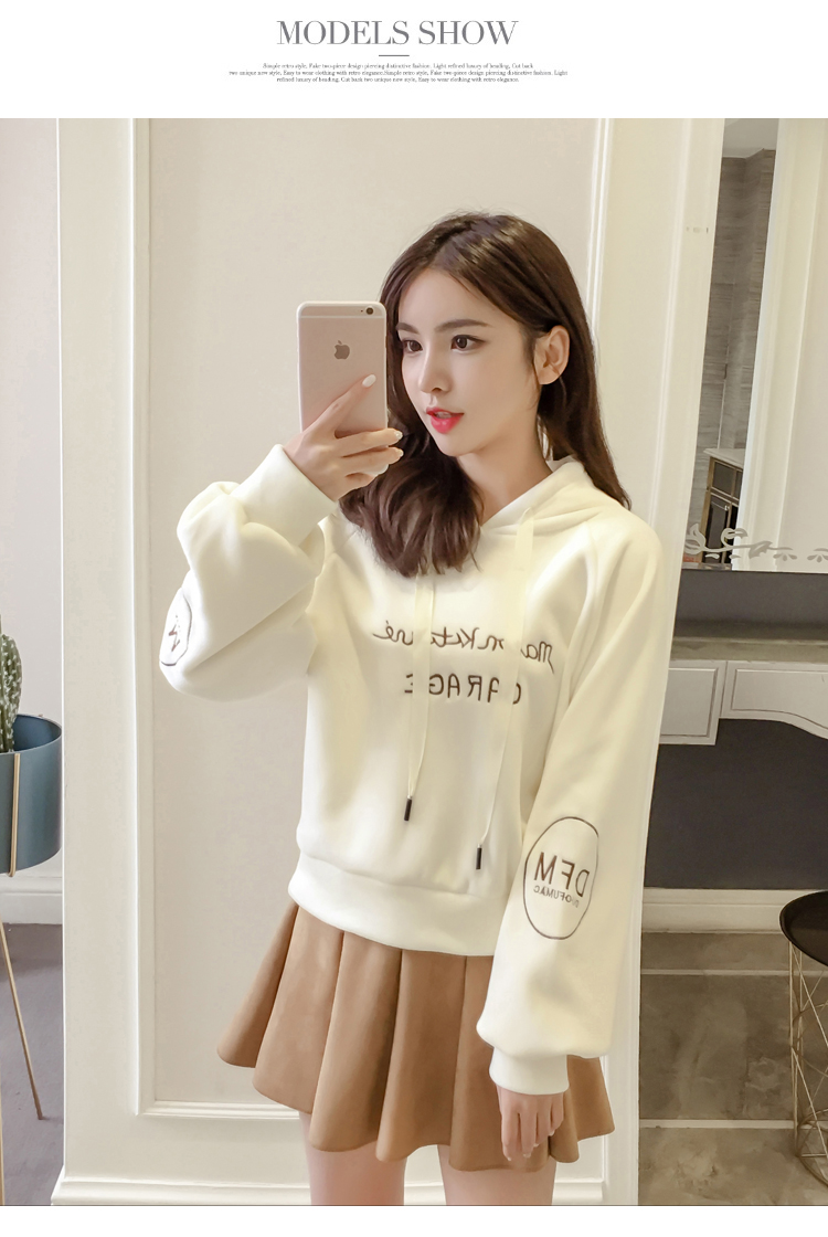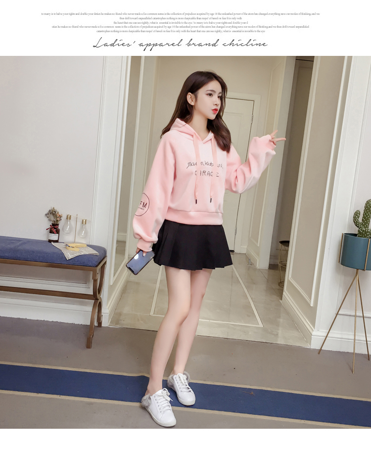金絲絨連帽衛衣女加絨加厚秋冬新款韓版寬松學生刺繡短款套頭上衣1入