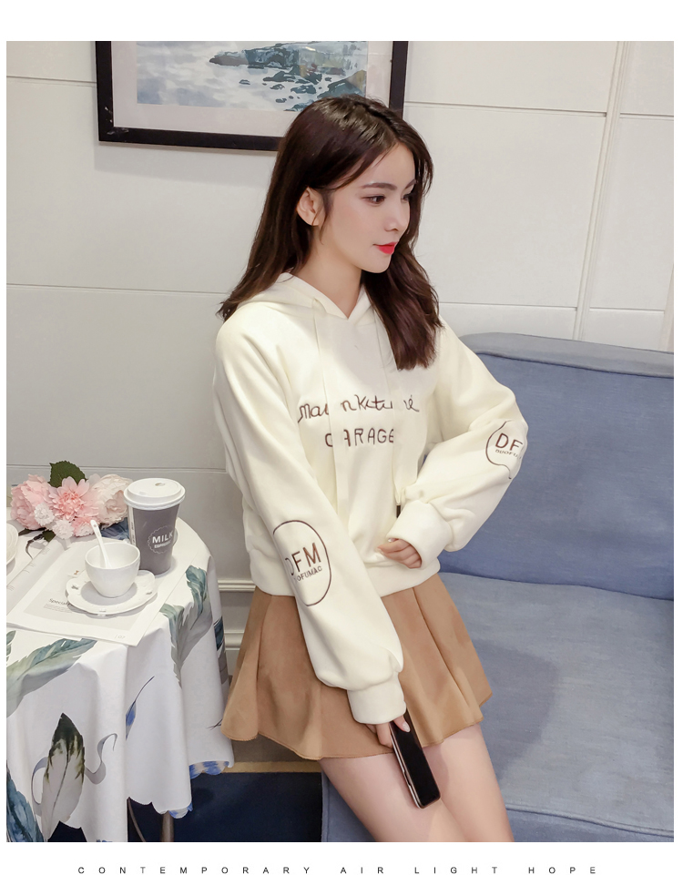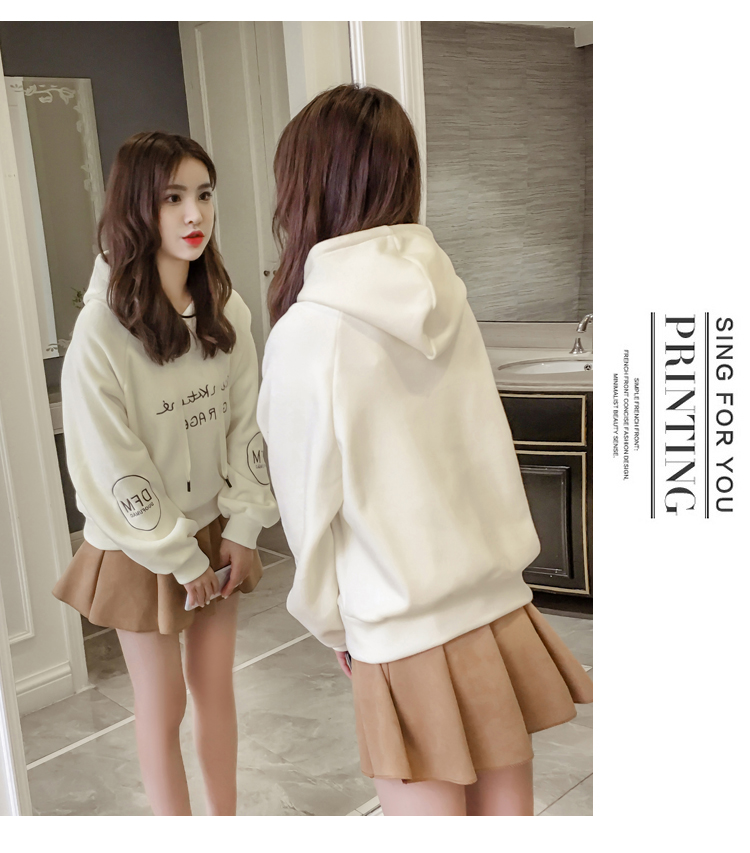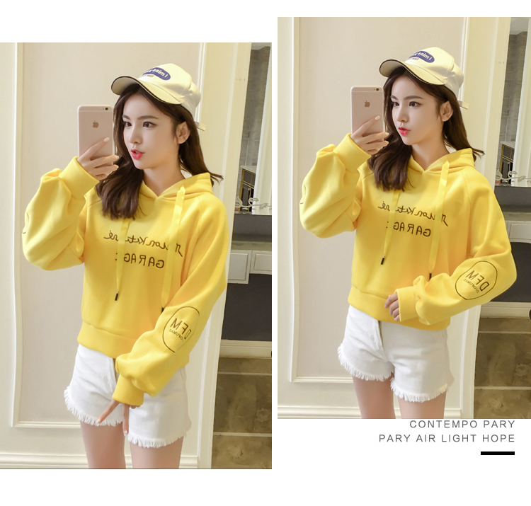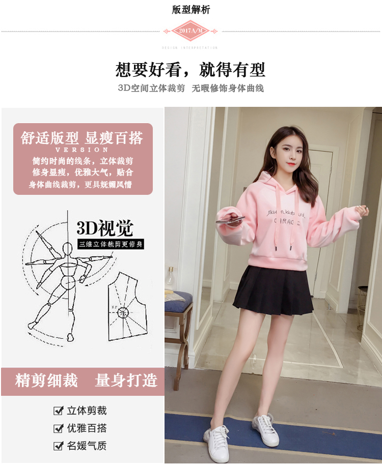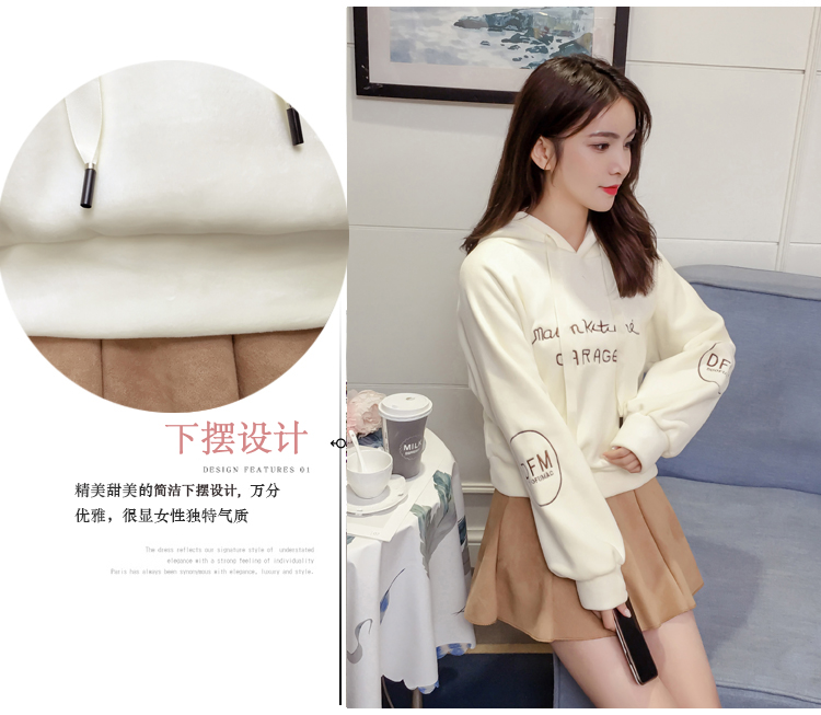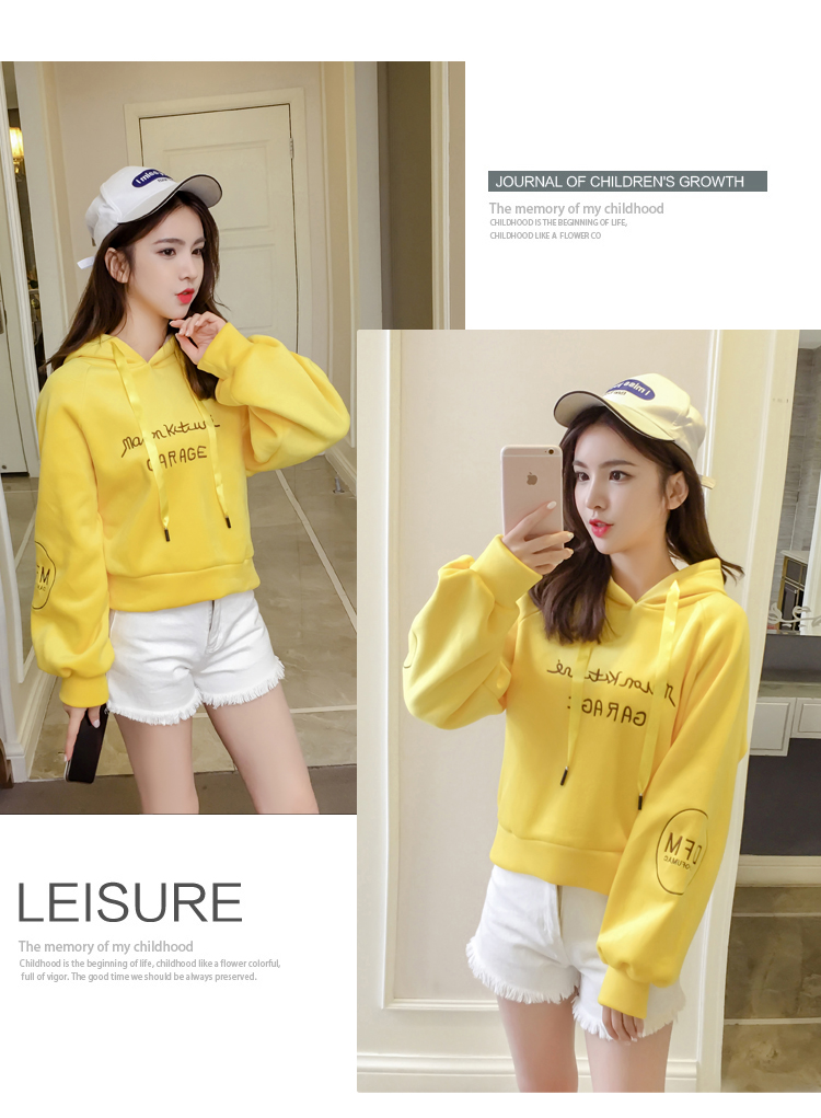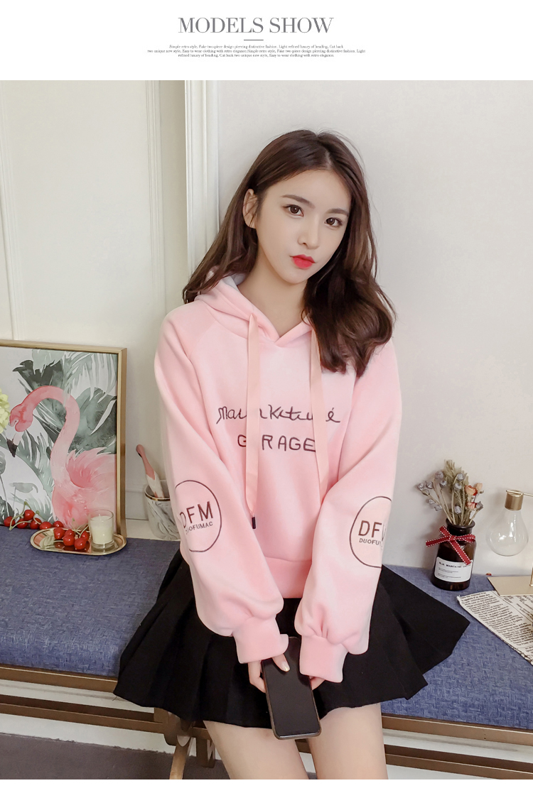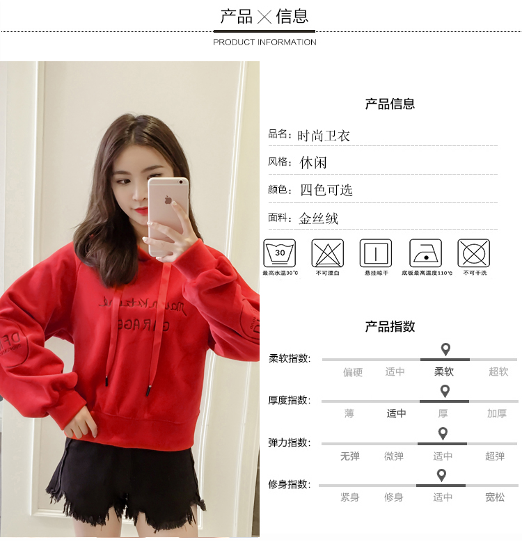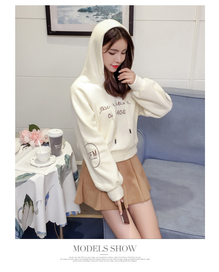 金絲絨連帽衛衣女加絨加厚秋冬新款韓版寬松學生刺繡短款套頭上衣1入