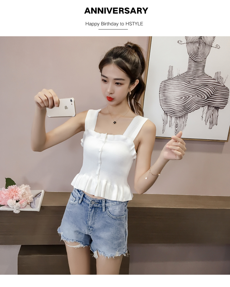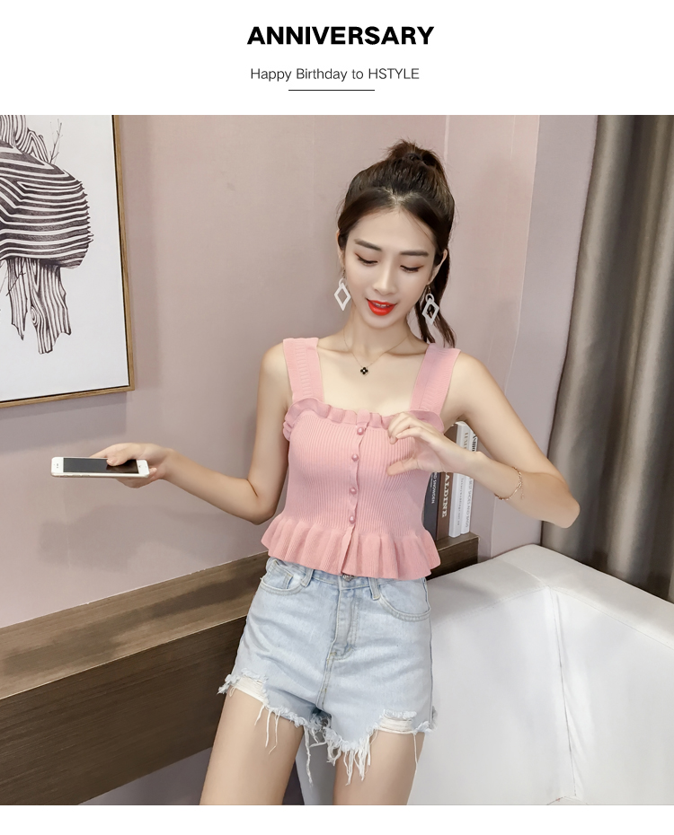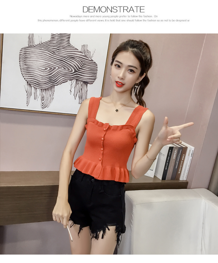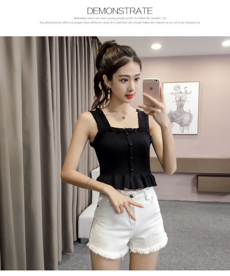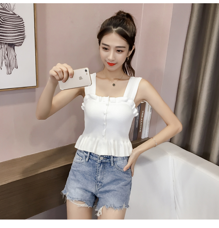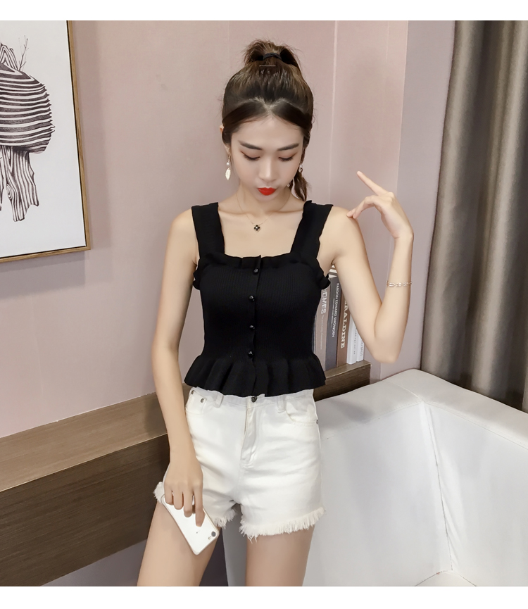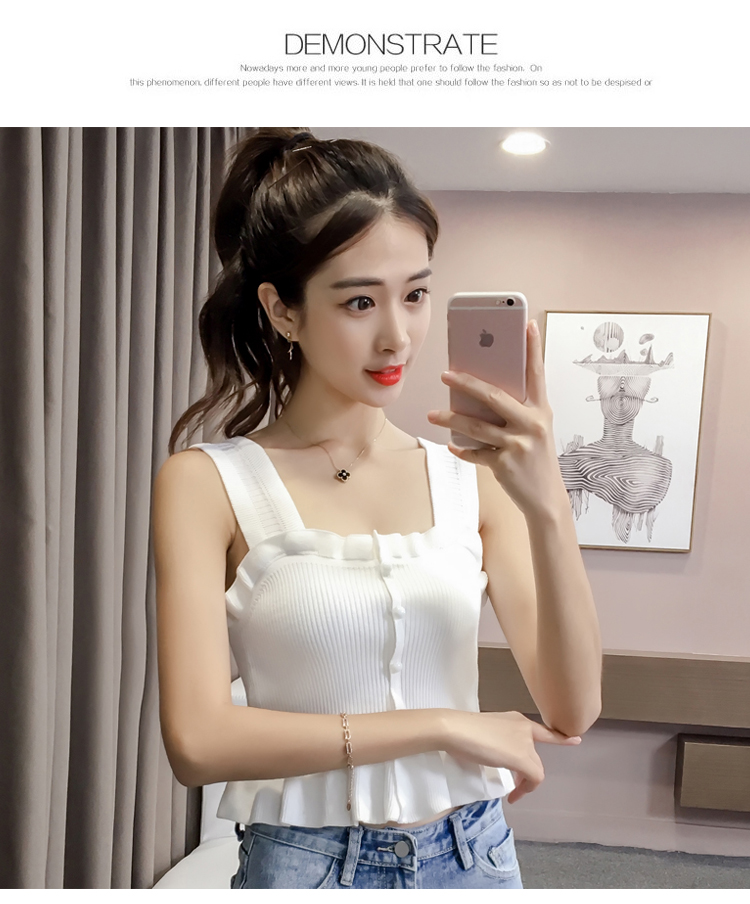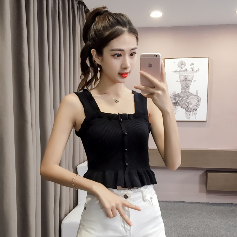 2019夏裝新款韓版修身吊帶背心女露肩性感外穿針織打底衫顯瘦上衣1入