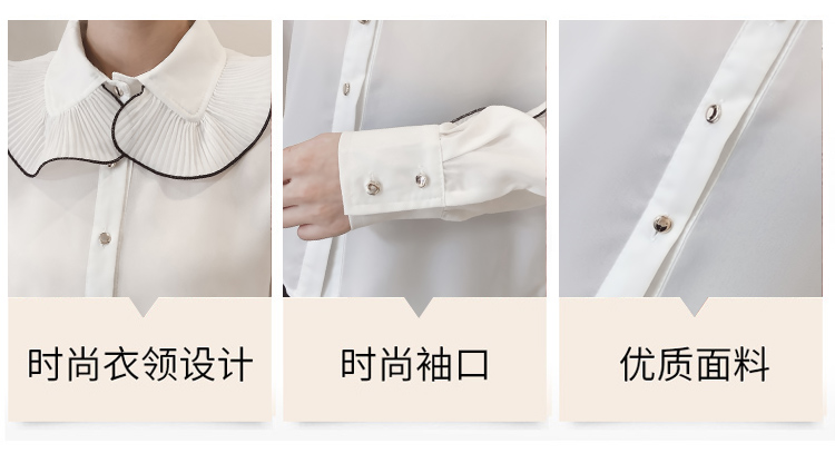 雪紡襯衫女長袖2019秋裝新款波浪木耳邊上衣韓范寬松襯衣寸很仙氣1入