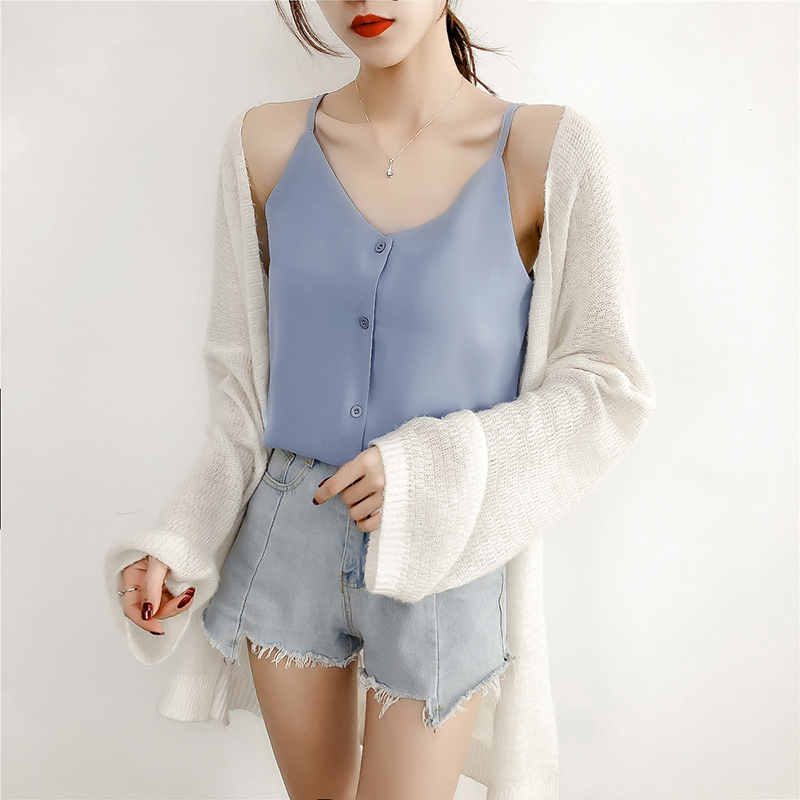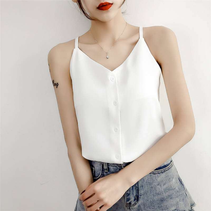 雪紡吊帶背心女外穿內搭打底泫雅風chic小清新心機無袖t恤上衣夏1入