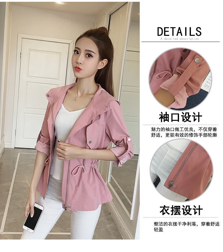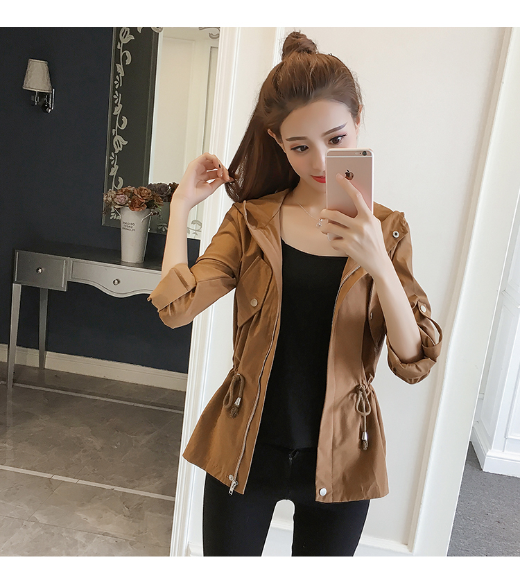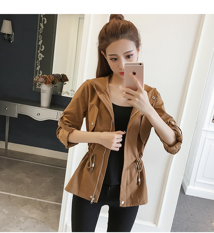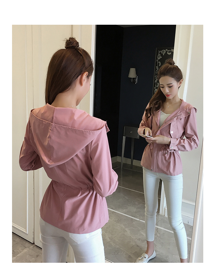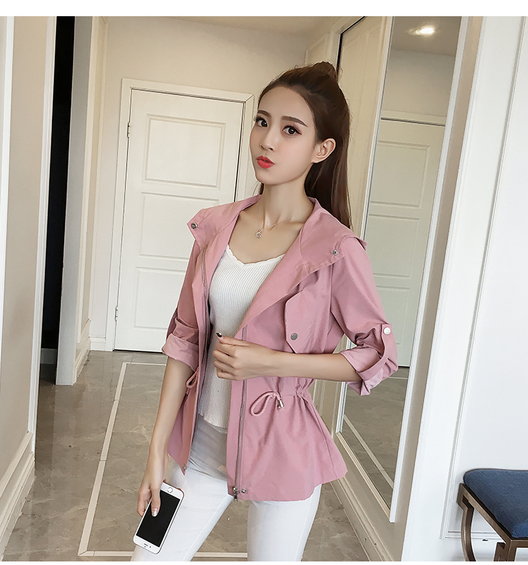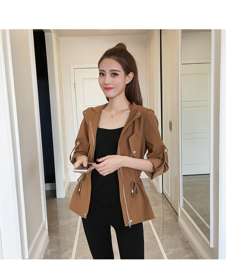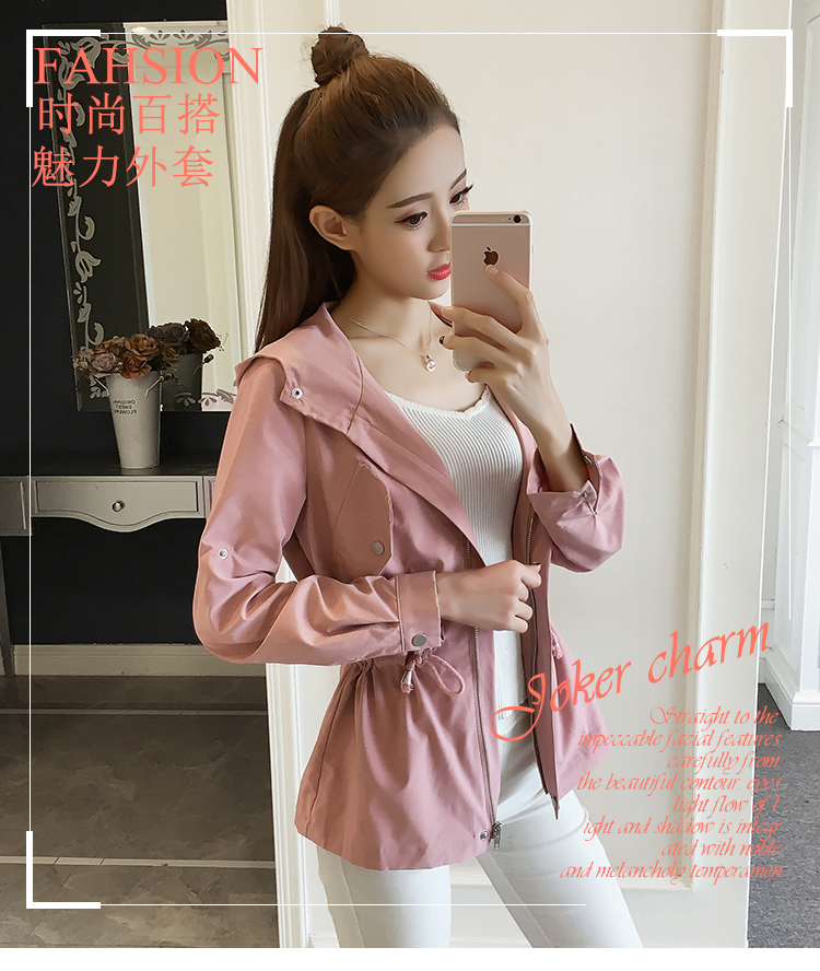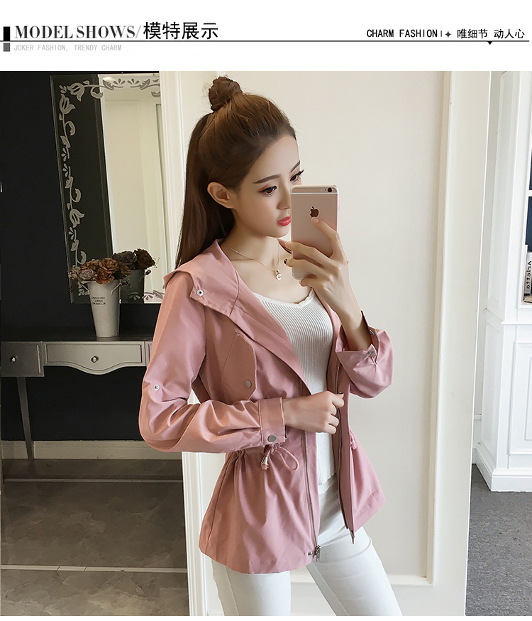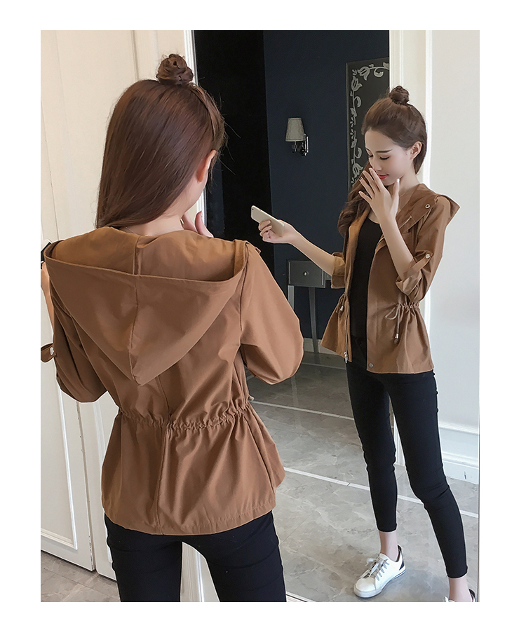 2019春秋新款韓版時尚女裝修身收腰小外套休閑百搭連帽短款薄外套1入