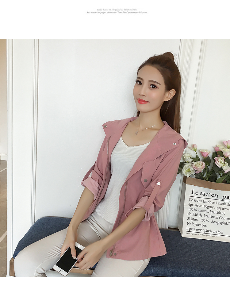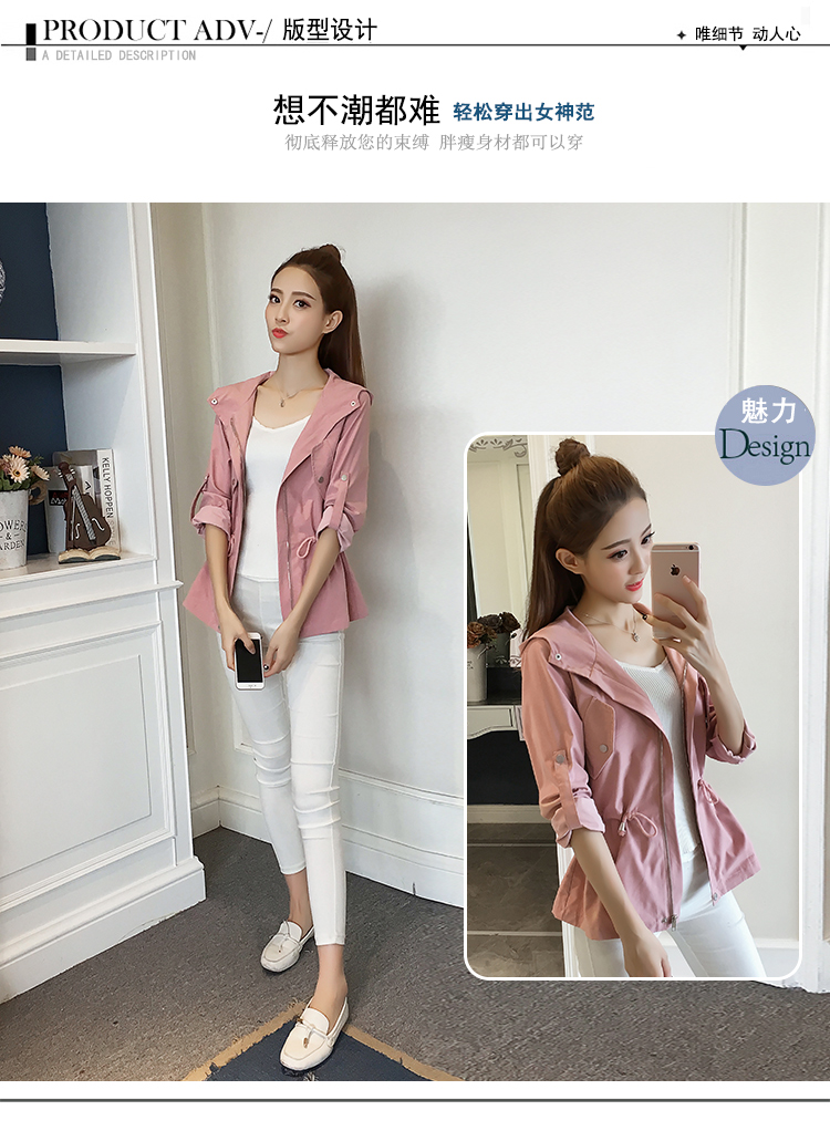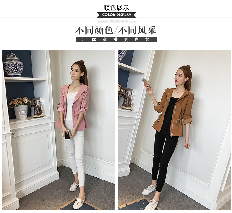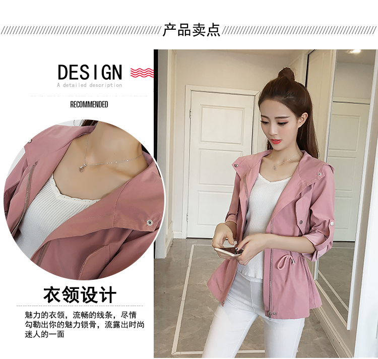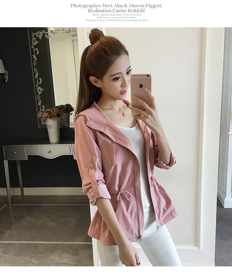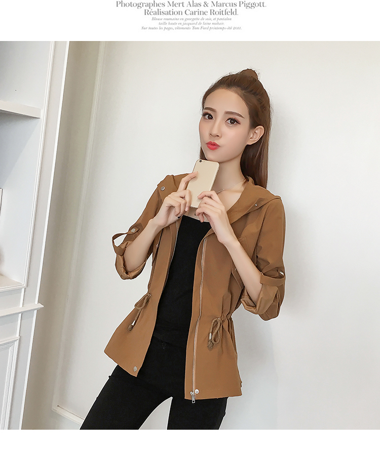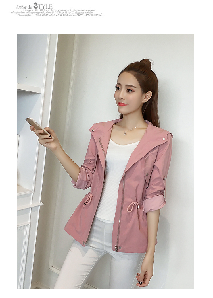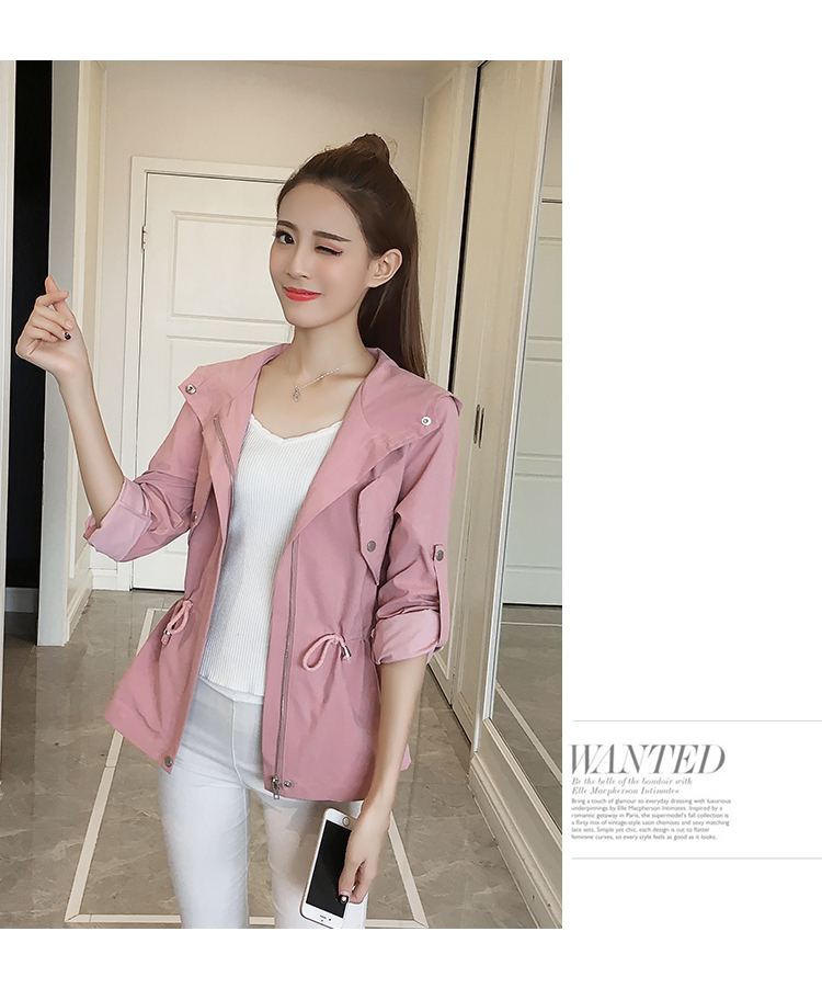 2019春秋新款韓版時尚女裝修身收腰小外套休閑百搭連帽短款薄外套1入