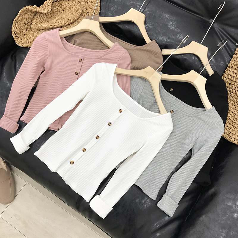 針織衫女簡約短款開衫單排扣長袖上衣 J#141入