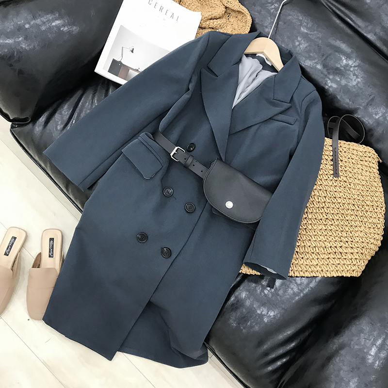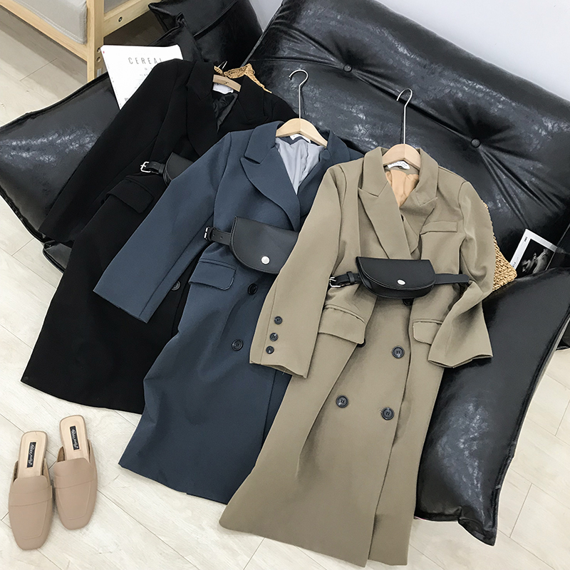 2.4斤 中長款過膝外套風衣女雙排扣休閑長款西裝 LL1入