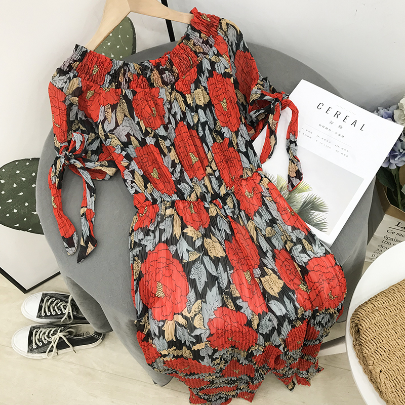 長款簡約氣質圓領高腰短袖連衣褲女H#203件6.9折1入