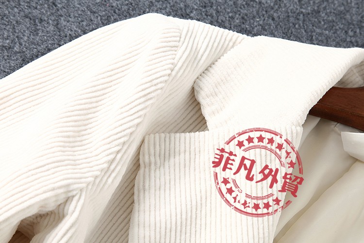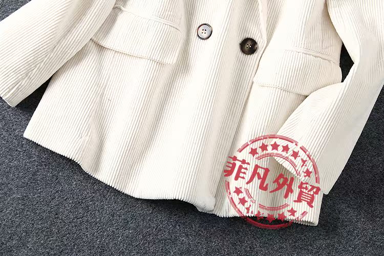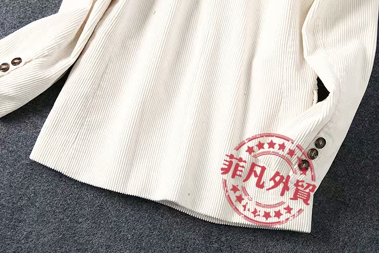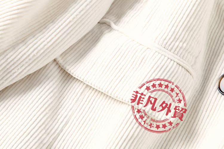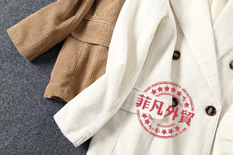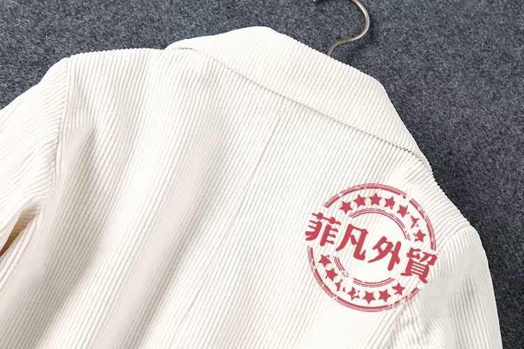 材質:聚酯纖維 燈芯絨西裝外套 不僅能打造優雅的復古風又能營造出一種溫暖的感覺 利落的西裝剪裁,腔調shi足,高ji文藝又有現代摩登感 里面配連衣裙,毛衣+褲裝,日常休閑,職業通勤都很顯時髦 直筒小寬松版型,剛過臀的衣長灰常好駕馭 翻駁領,雙排扣,經典大方 袖口有紐扣裝飾,簡約中透著細節感 質地很柔的燈芯絨面料,質感好,上身有型,有里襯設計 PS:正面飾有口袋,厚薄適中,適合秋季 平鋪尺寸: 34:肩寬36cm 胸圍 88cm 衣長69cm 袖長58cm 36:肩寬37cm 胸圍 92cm 衣長70cm 袖長59cm 38:肩寬38cm 胸圍 96cm 衣長71cm 袖長60cm 40:肩寬39cm 胸圍100cm 衣長72cm 袖長61cm 42:肩寬40cm 胸圍104cm 衣長73cm 袖長62cm 尺寸為人工隨機抽樣平鋪實量,一般誤差在1-3cm左右屬于正常范圍