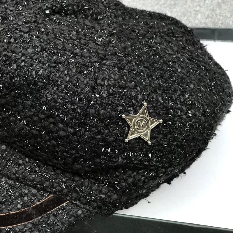 2019秋季新款粗毛呢八角帽女英倫復古畫家帽貝雷帽鴨舌帽女潮帽子1入
