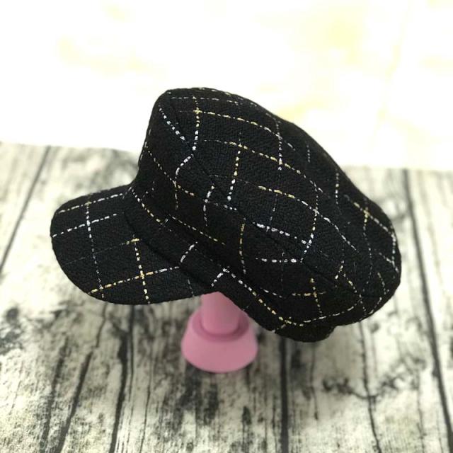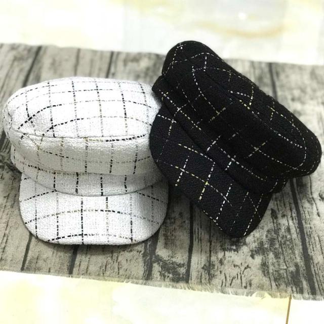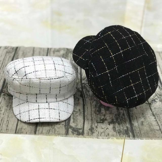 2018秋冬新款花呢平頂海軍貝雷帽女韓版潮鴨舌帽報童帽子時尚百搭1入