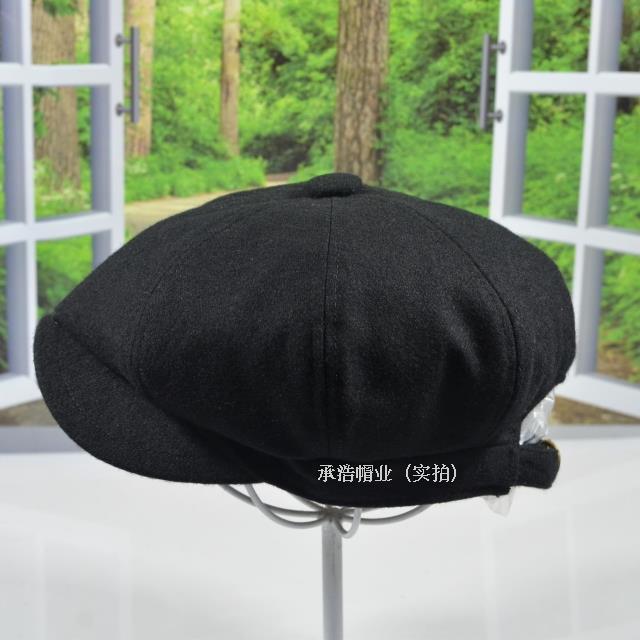 韓版復古鴨舌帽貝雷帽男女士羊毛呢八角帽休閑百搭情侶帽子可調節1入