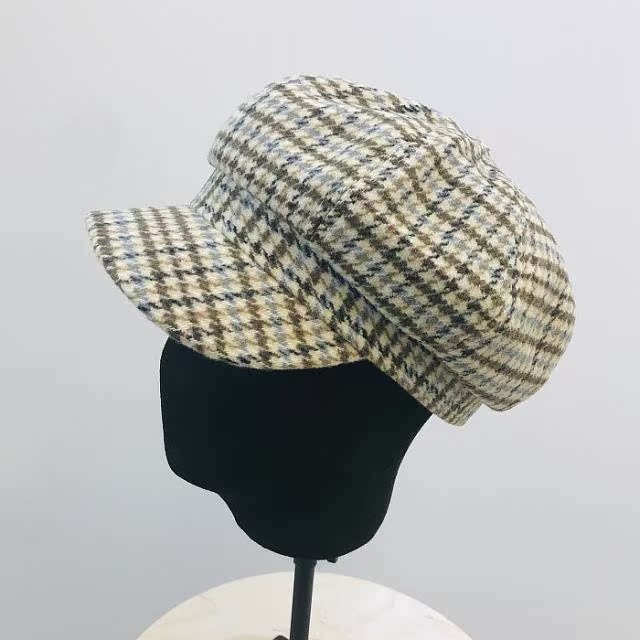 2018秋冬日本款簡約加厚毛呢彩色面料女休閑百搭鴨舌帽八角帽保暖1入