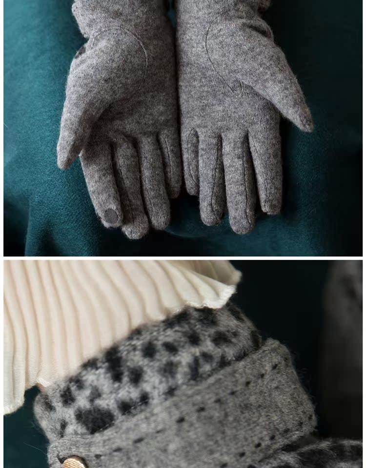 沛錦羊絨羊毛手套 冬季新款保暖釘珠車縫線針織手套觸屏手套女士1入