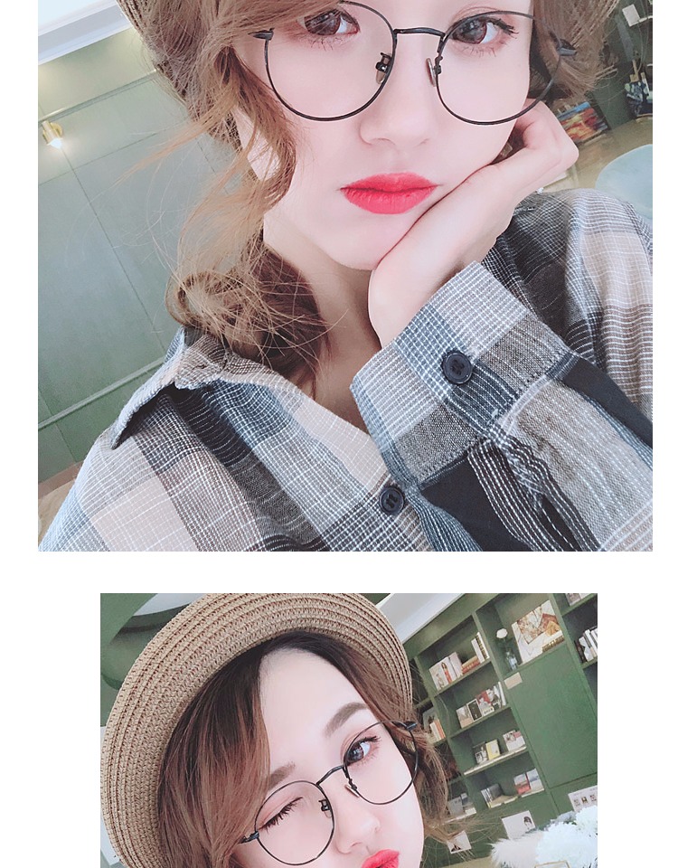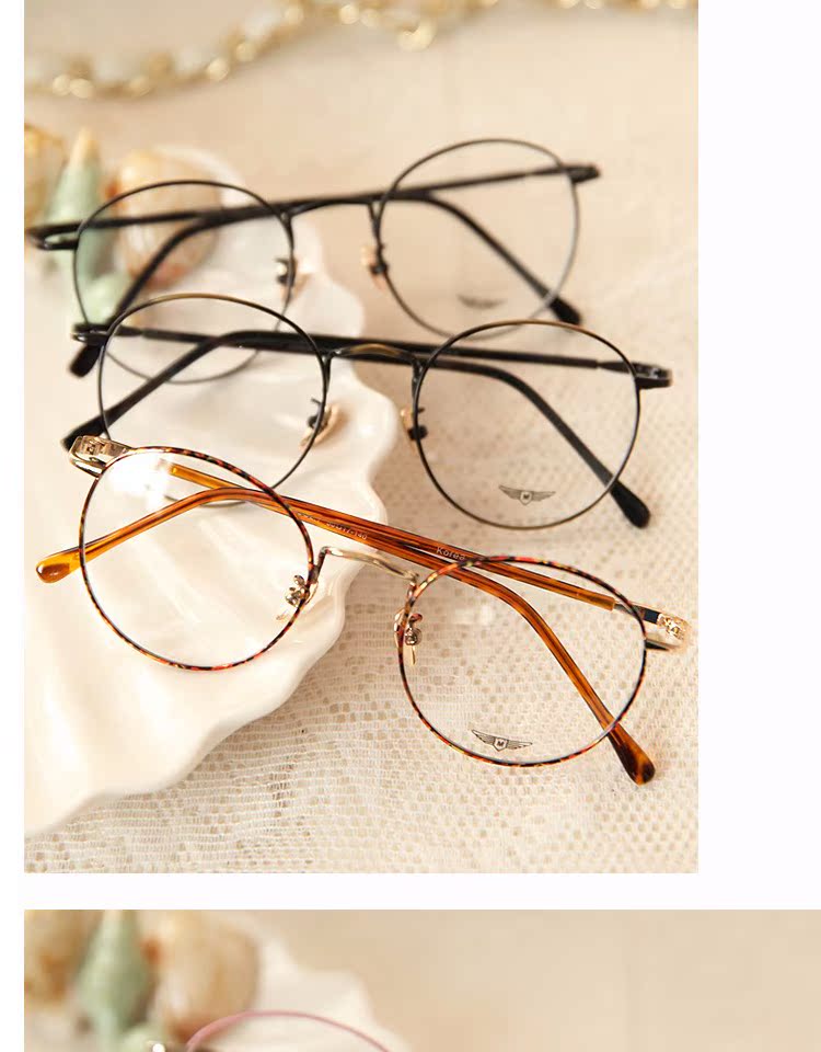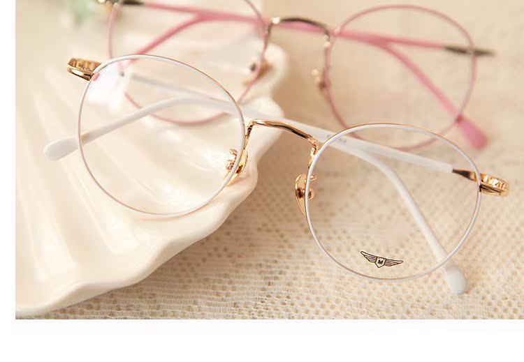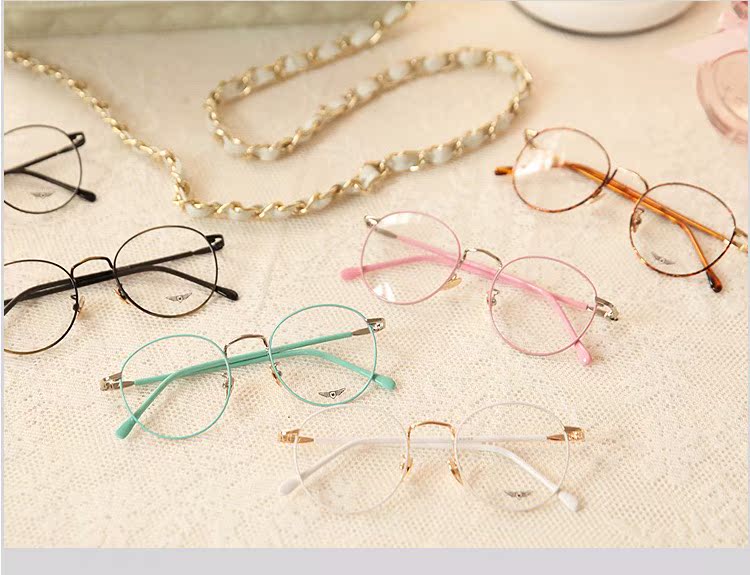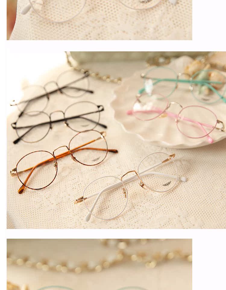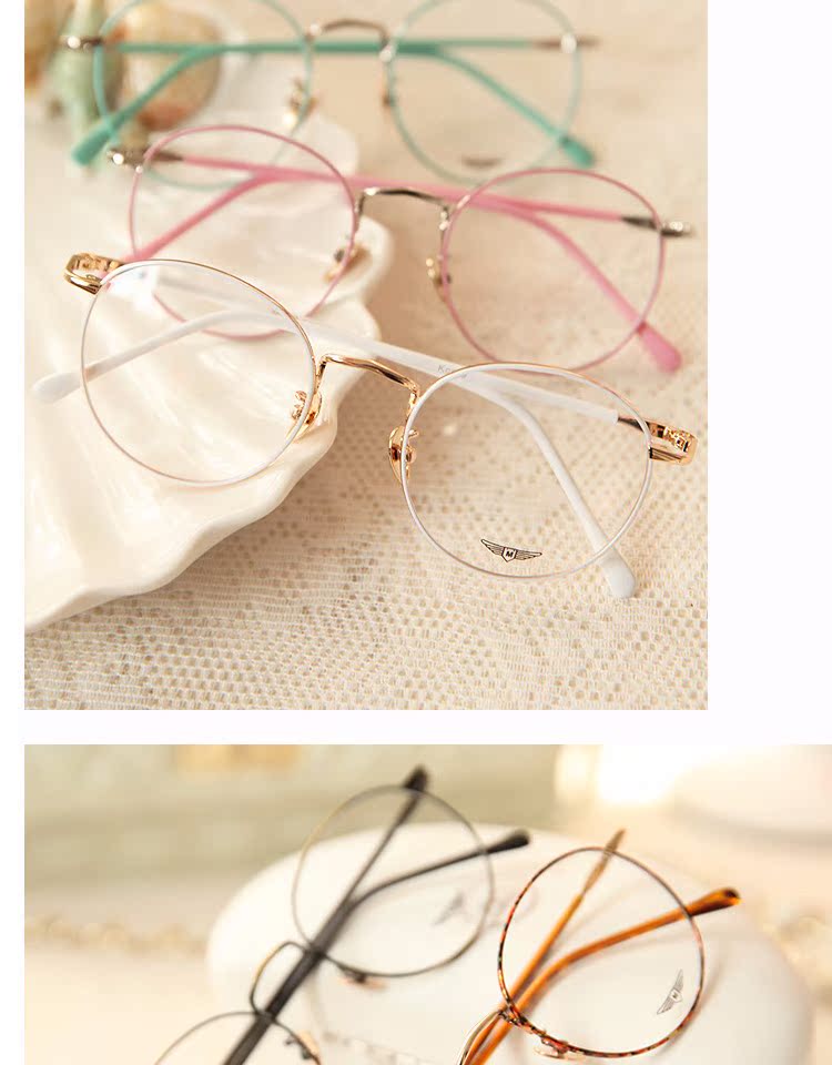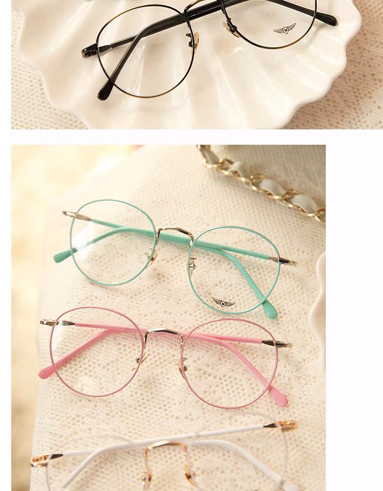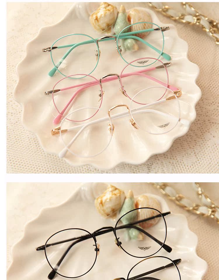 送眼鏡盒框架糖果色烤漆圓形平光鏡甜美純色馬卡龍復古眼鏡架女士1入
