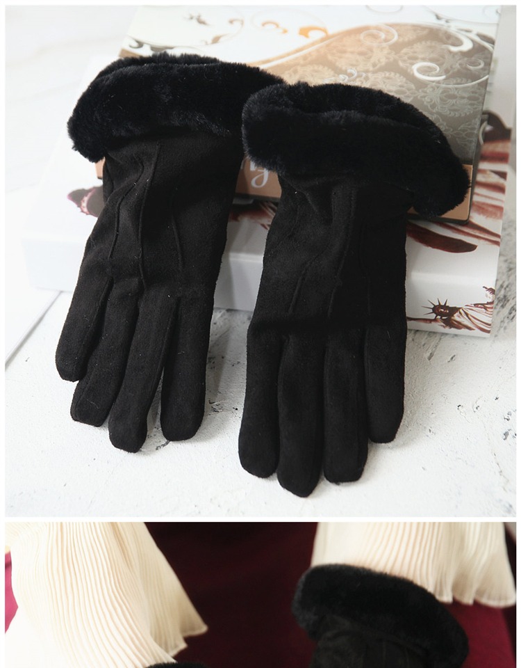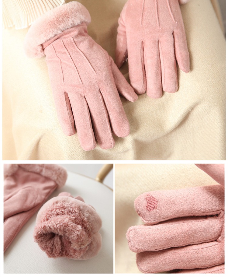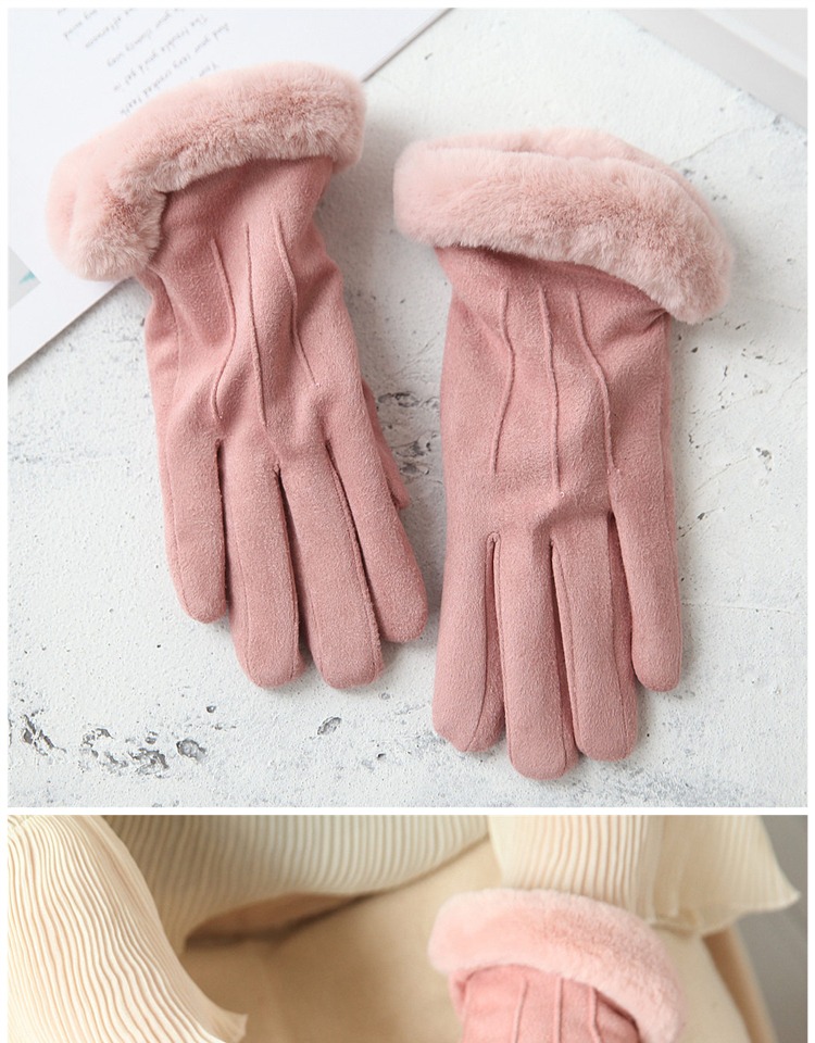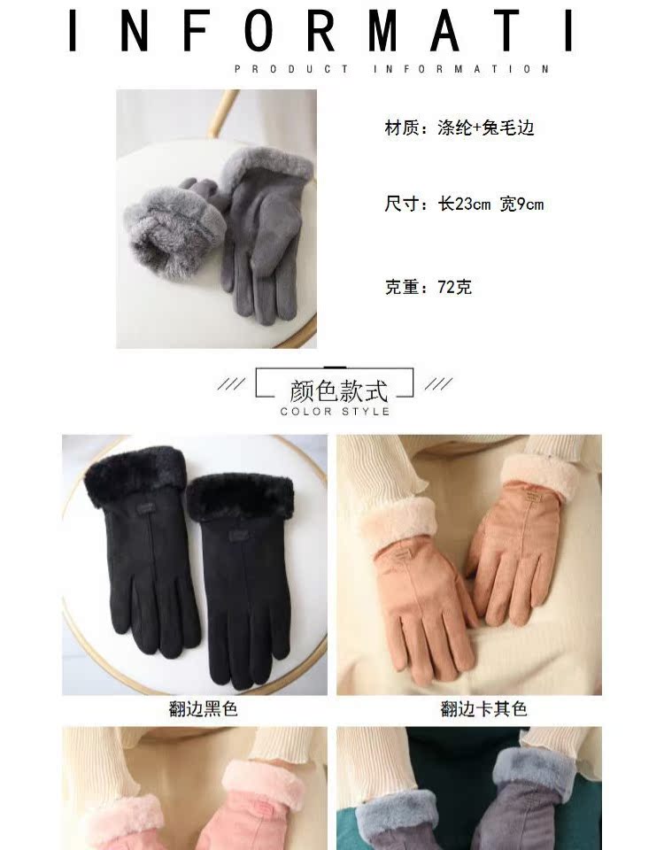 沛錦兔毛邊女士手套冬季加絨內膽保暖麂皮絨防滑觸屏手套騎車抗風1入