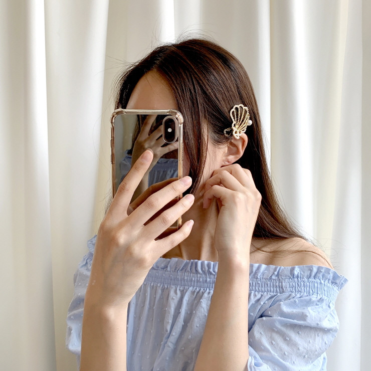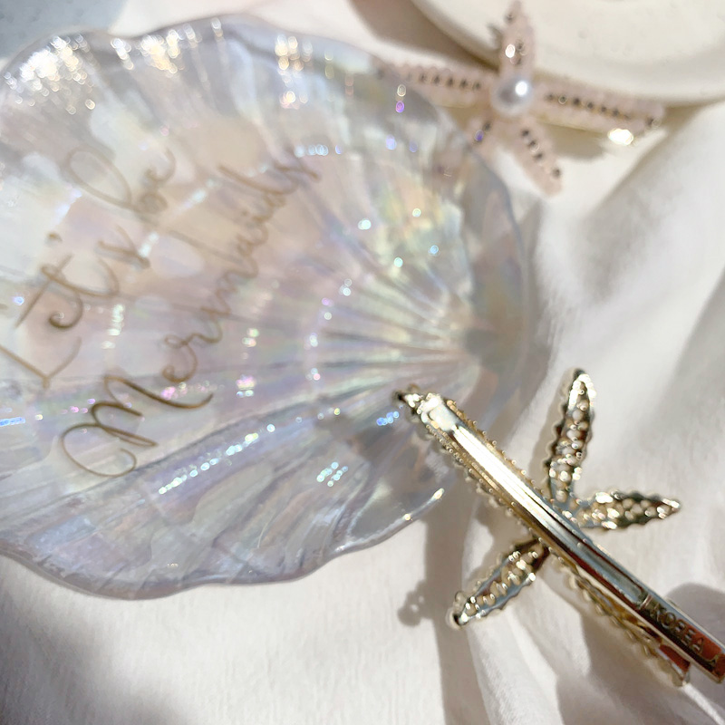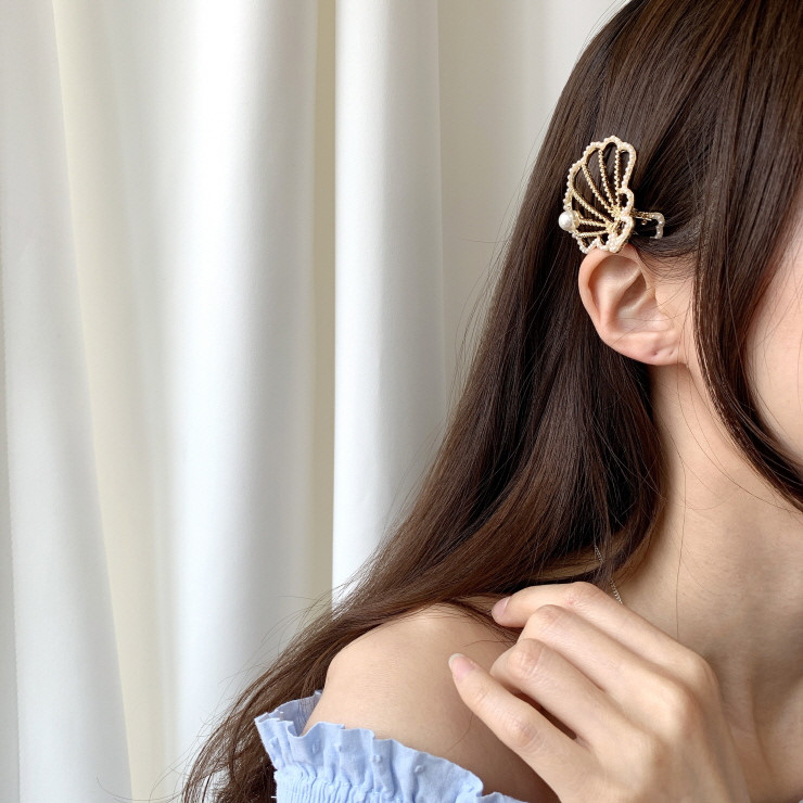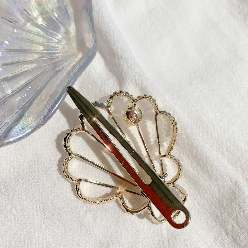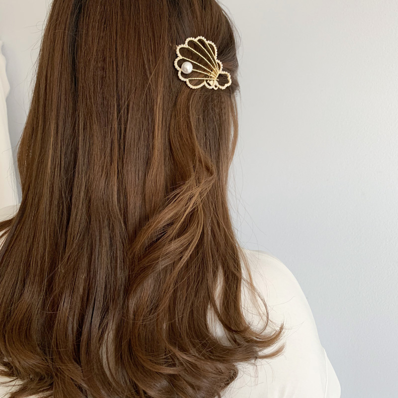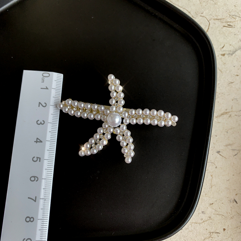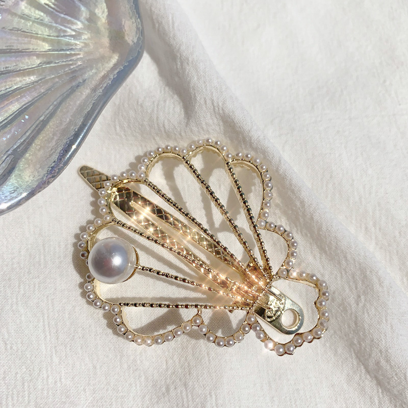 韓國網紅復古仙女海星貝殼珍珠邊夾發夾鴨嘴夾發飾發卡女1入