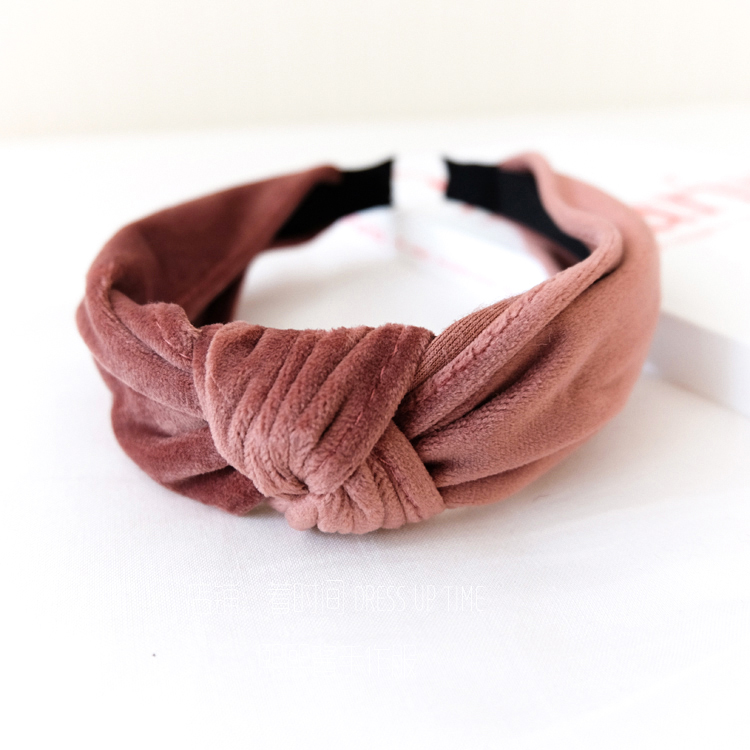 韓國訂單復古色系天鵝絨進口平絨扭花舒適發箍CHIC風飾品1入