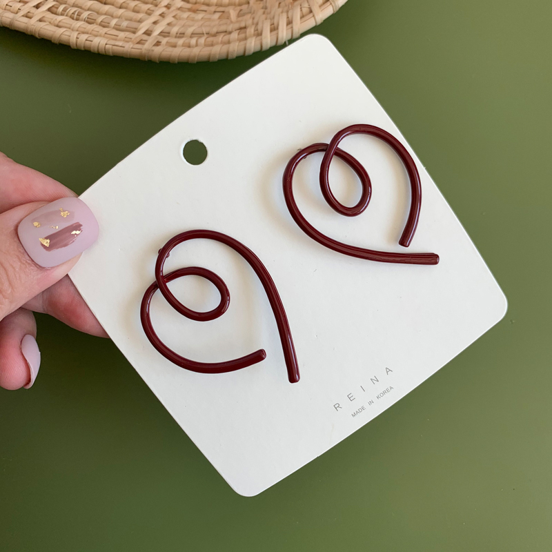 韓國簡約秋冬新款復古愛心耳環ins夸張網紅款扭花耳環耳飾1入