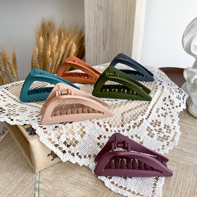 韓國莫蘭迪色中號磨砂三角形大發抓純色簡潔樹脂盤發夾抓夾1入