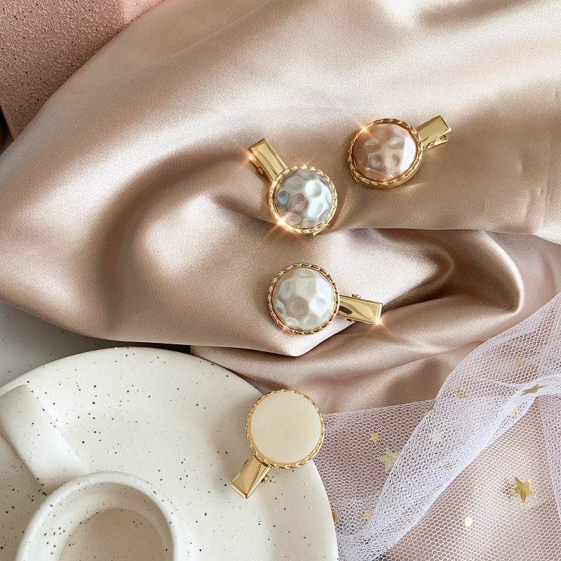醬網紅仙女款復古小巧一顆珍珠貝殼樹脂邊夾鴨嘴夾發卡發飾1入