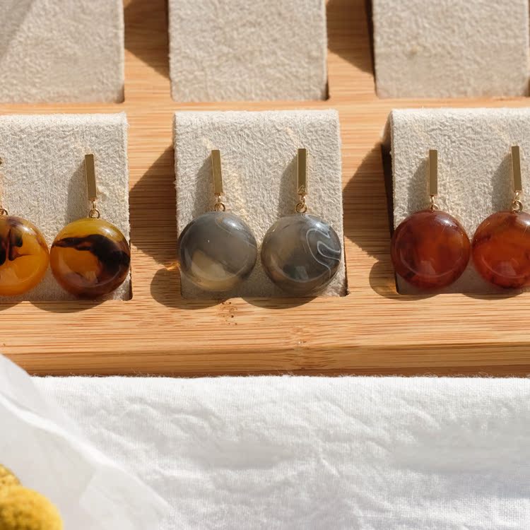 韓國很流行的圓形立體簡約造型,顏色也很豐富哦! 不用代購或者在韓國本地就可以買到到的流行款那!樹脂材質很輕~紋理都不同哈