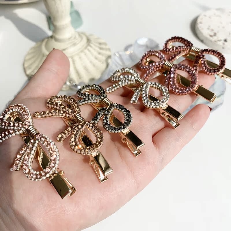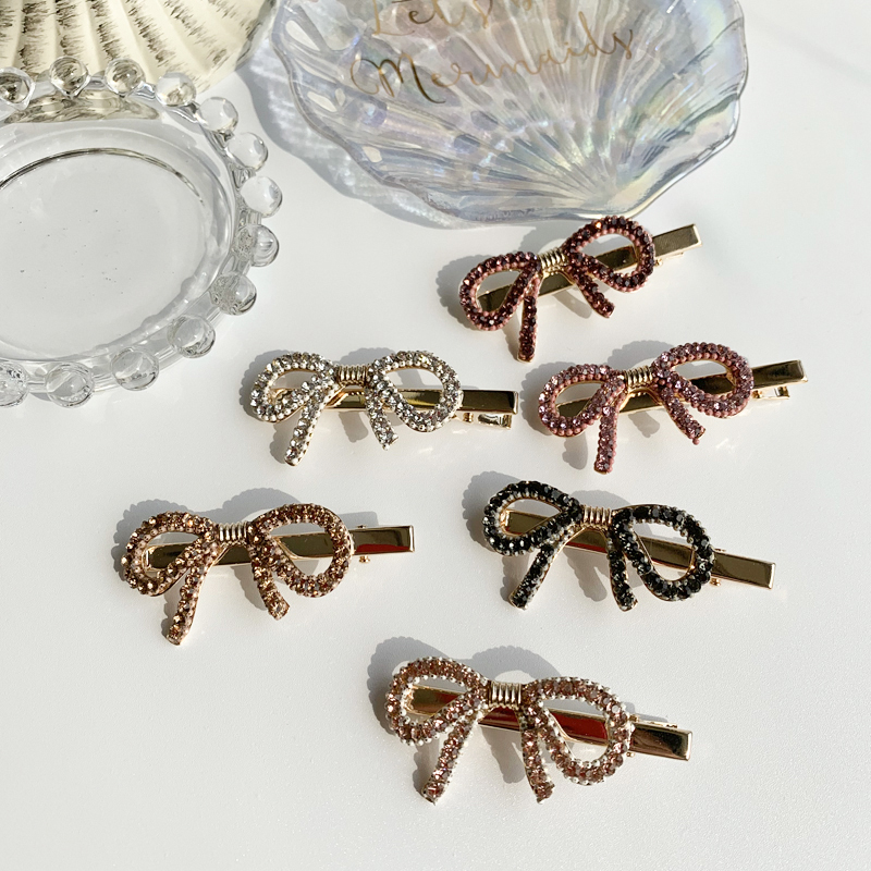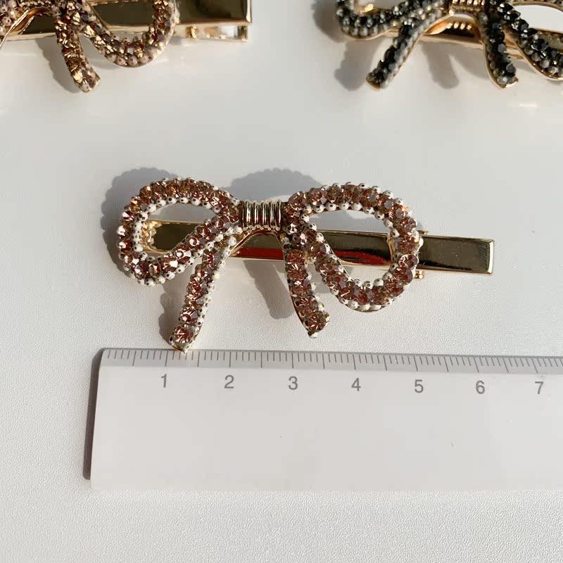 韓國優雅復古精致閃爍蝴蝶結邊夾水晶水鉆發夾發卡發飾邊夾1入