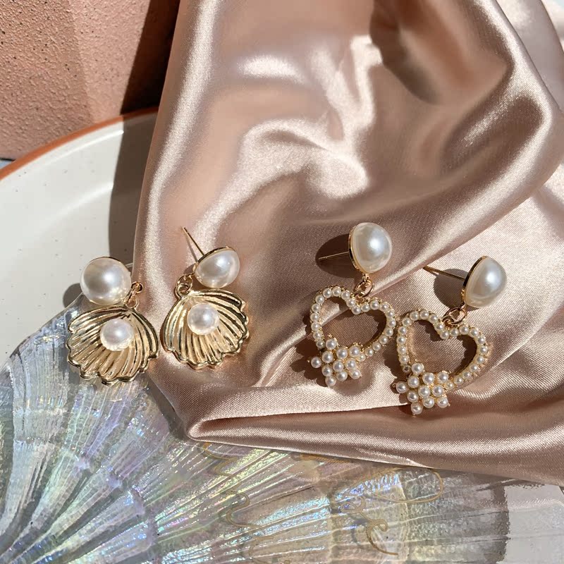超仙復古法式美人魚貝殼珍珠氣質網紅款可愛耳釘耳環耳飾1入