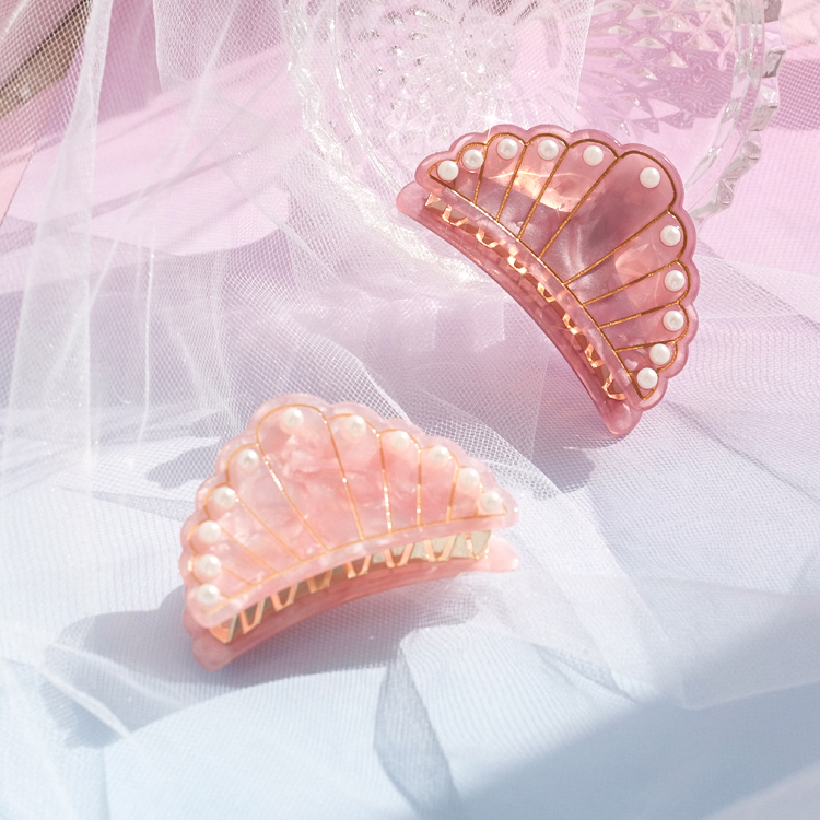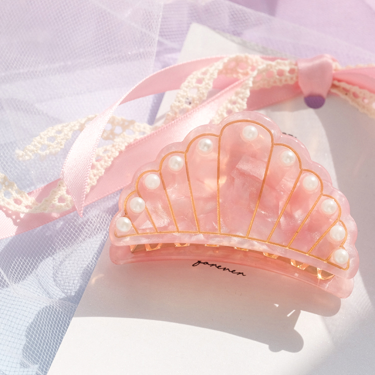 設計款日本日系可愛系軟妹珍珠裝飾日系仙女風抓夾發夾發飾1入