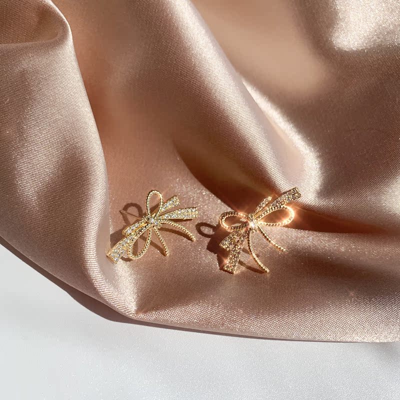 韓國東大門溫柔氣質蝴蝶結耳釘905銀精致耳飾仙女同款耳環1入