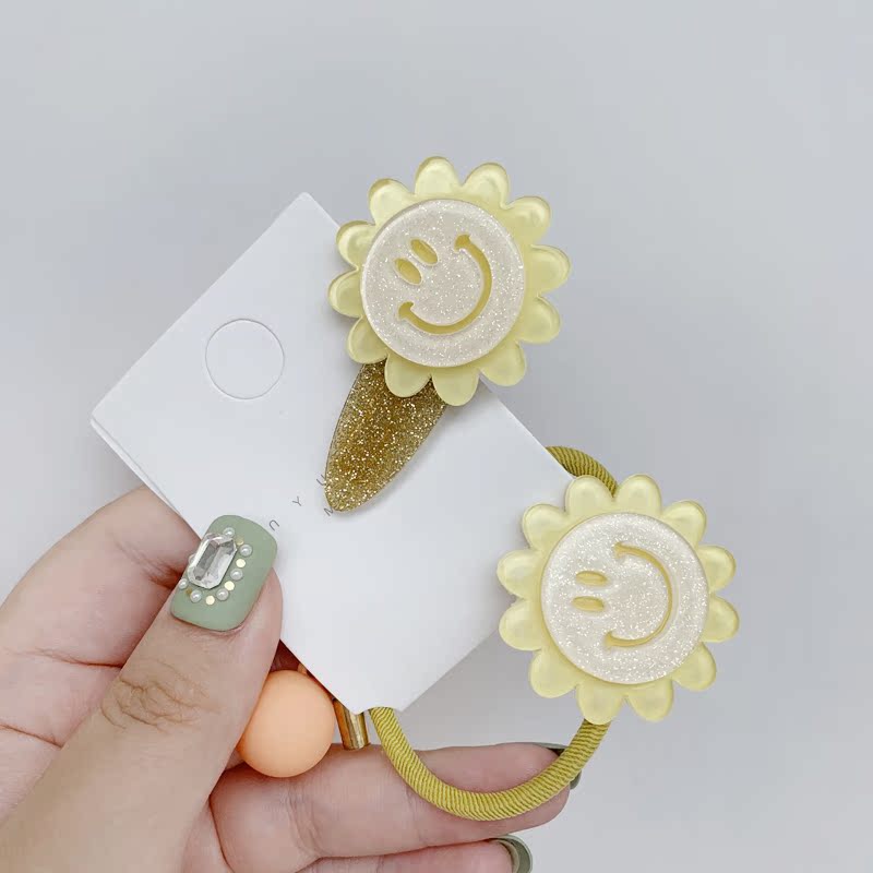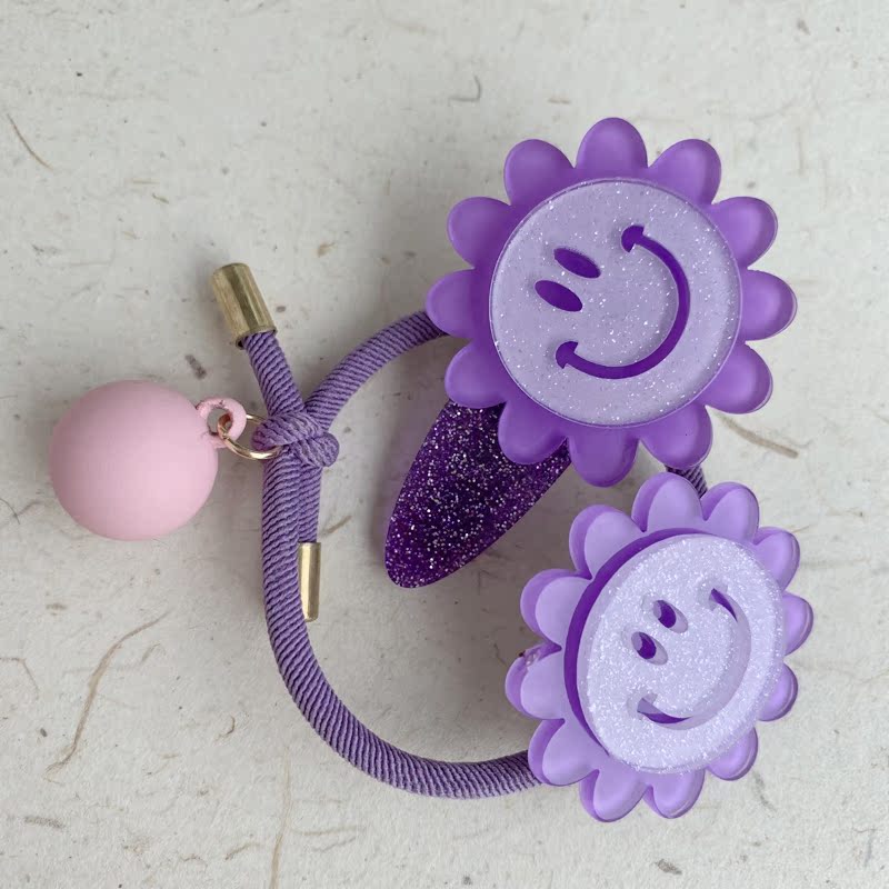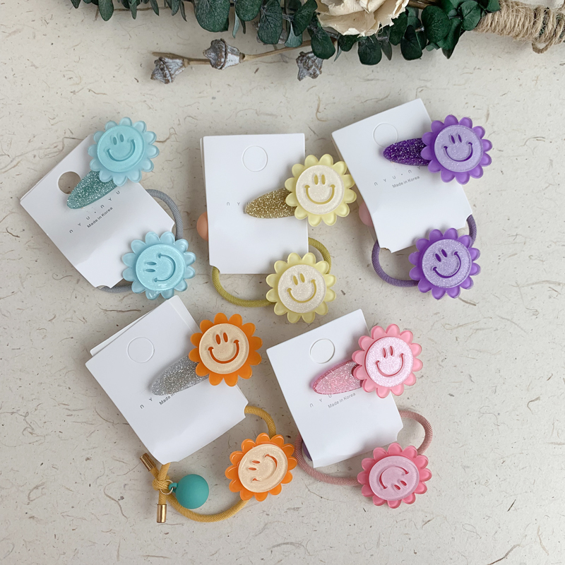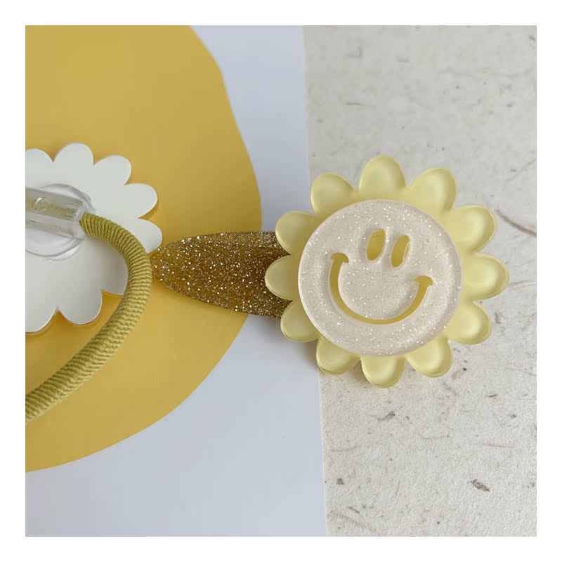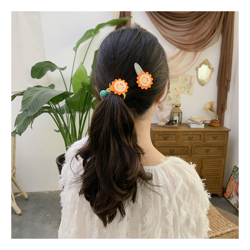 韓國東大門花朵笑臉正能量發圈時尚頭繩皮筋丸子頭綁發飾品1入