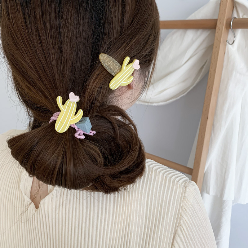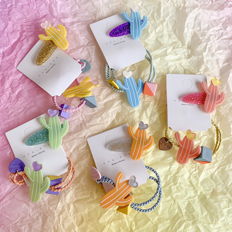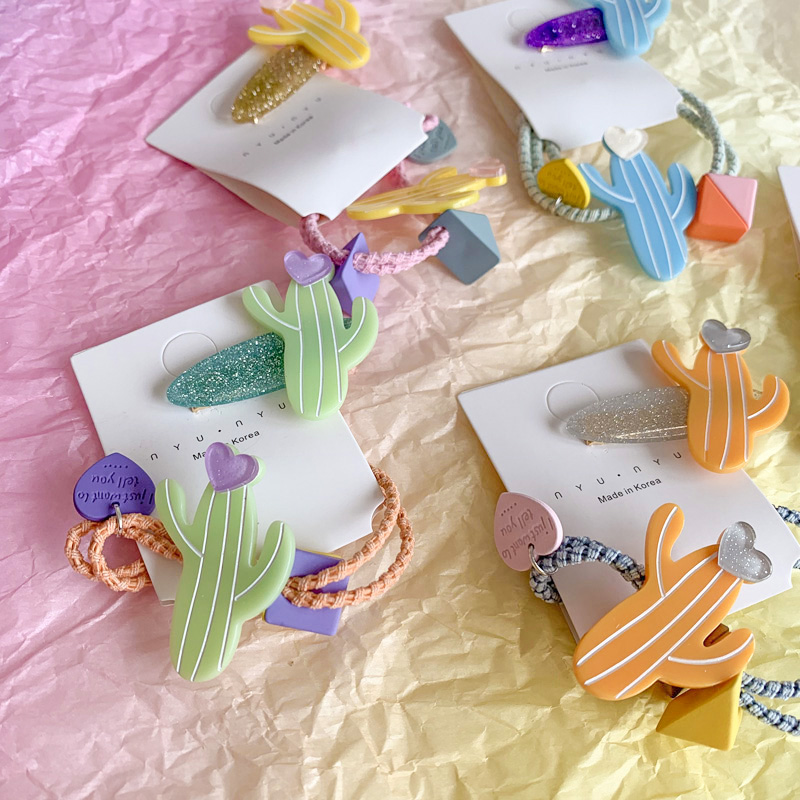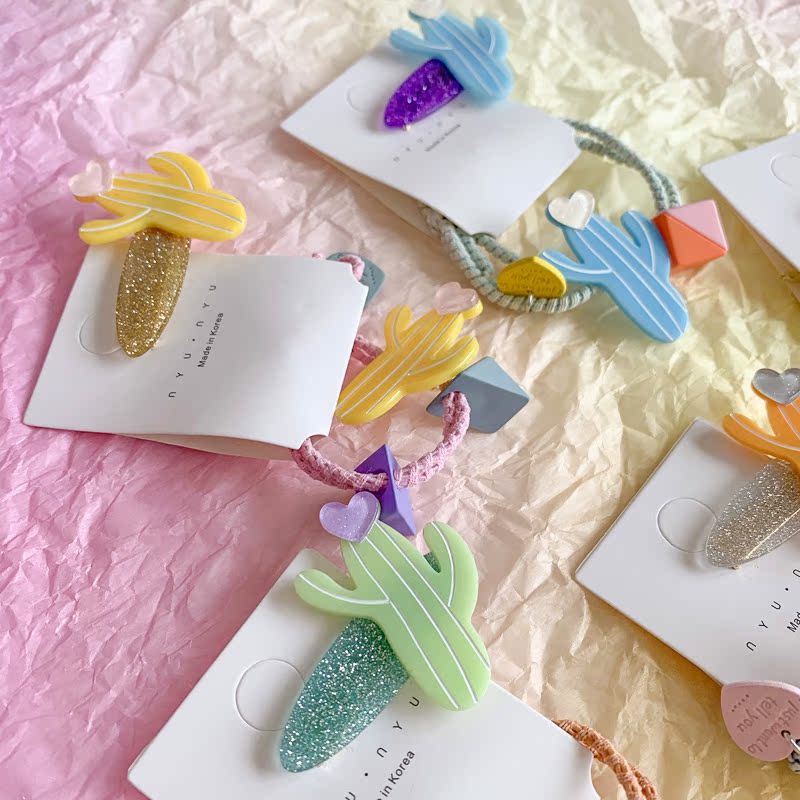 韓國ins復古可愛夏日新款發夾糖果仙人掌發飾邊夾發繩發圈1入