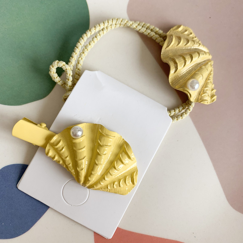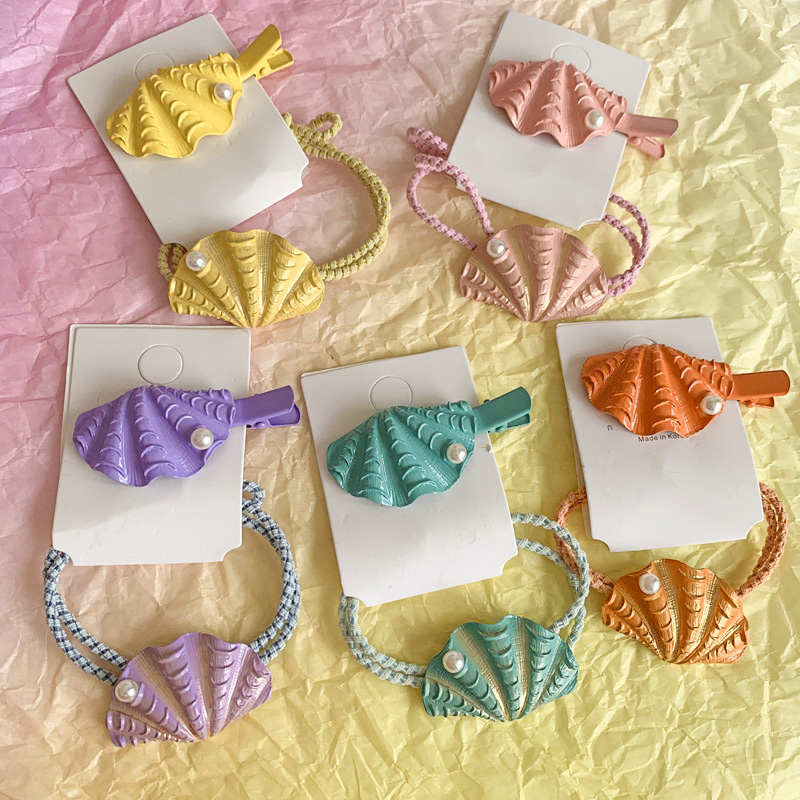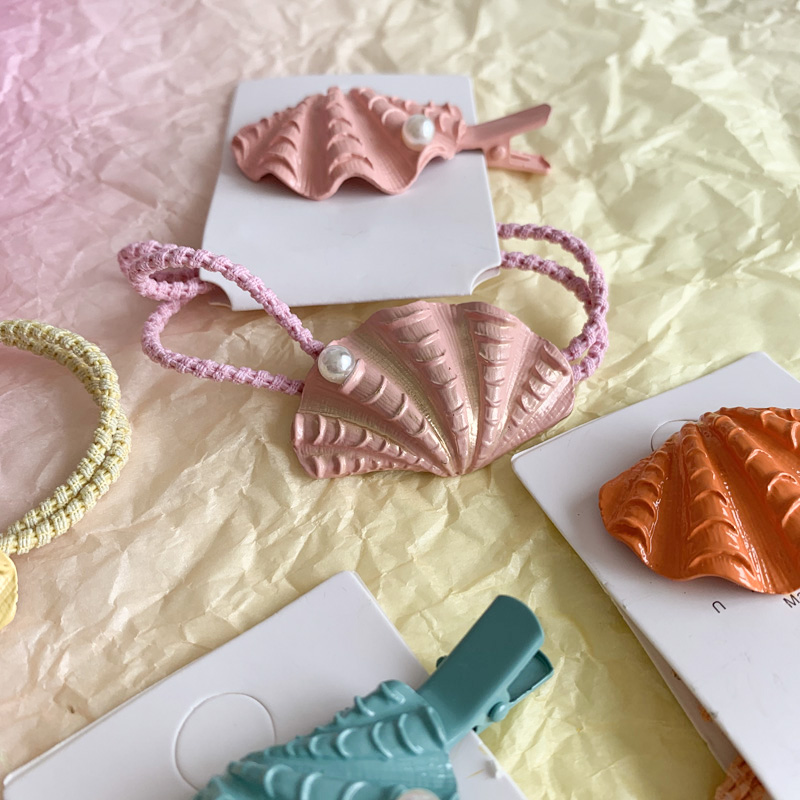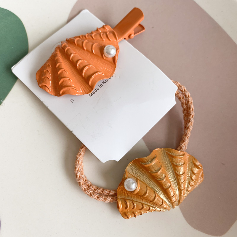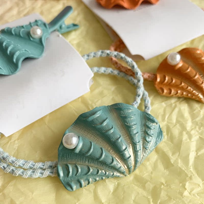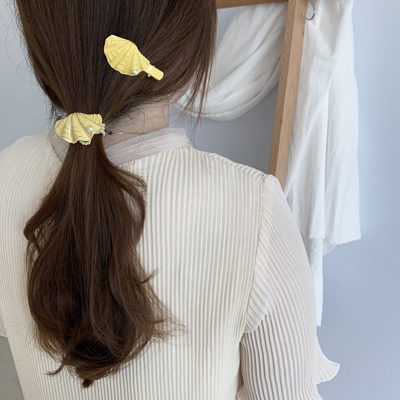 韓國美人魚貝殼邊夾發夾丸子頭皮筋頭繩發圈網紅ins飾品女1入