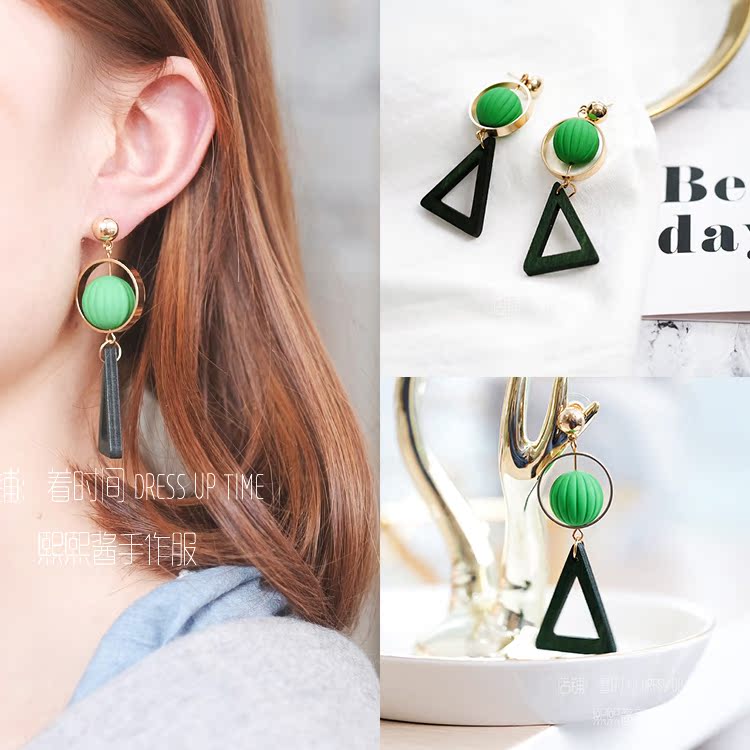 韓國風簡約圣誕樹造型三角圓圈耳釘耳環1入