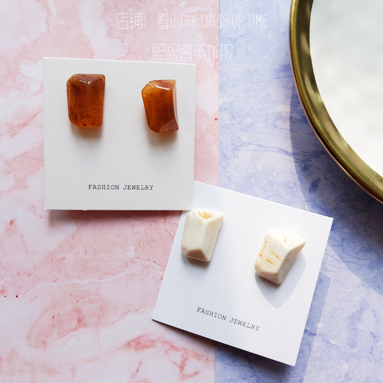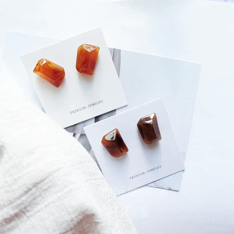 韓國訂單不規則造型CHIC風奶糖玳瑁ANNA MALI耳釘耳環1入