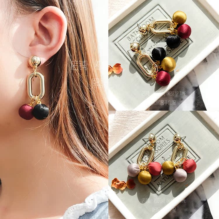 韓國訂單鍍金無補貨立體果子小球球裝飾耳環1入
